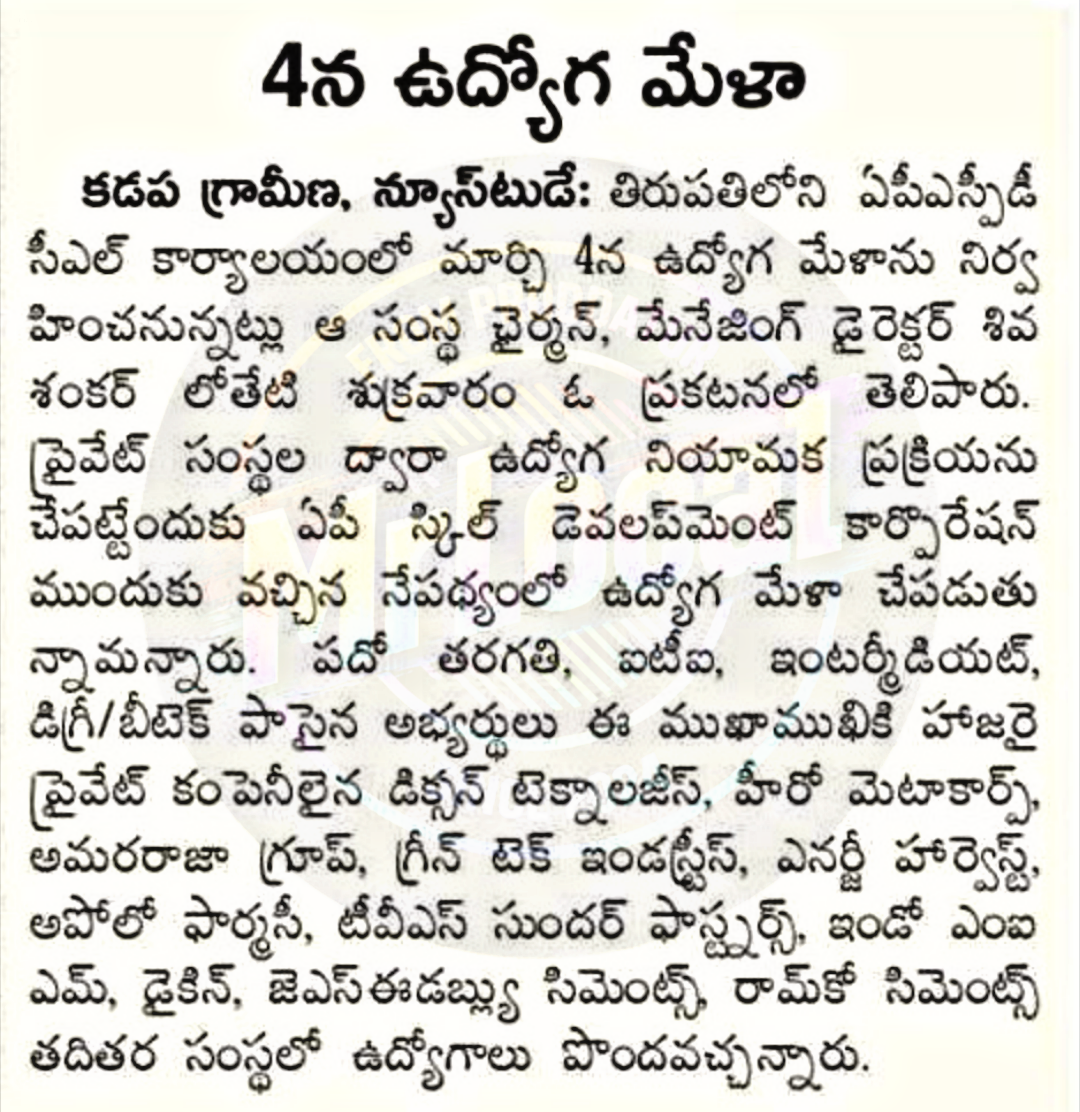 Great news for job seekers in the region! The AP State Skill Development Corporation (APSSDC) is organizing a massive Job Mela for private companies.#Naveen🚀 Mega Job Mela on March 4th! Great news for job seekers in the region! The AP State Skill Development Corporation (APSSDC) is organizing a massive Job Mela for private companies.#Naveen0 Comments 0 Shares 273 Views 0 Reviews -