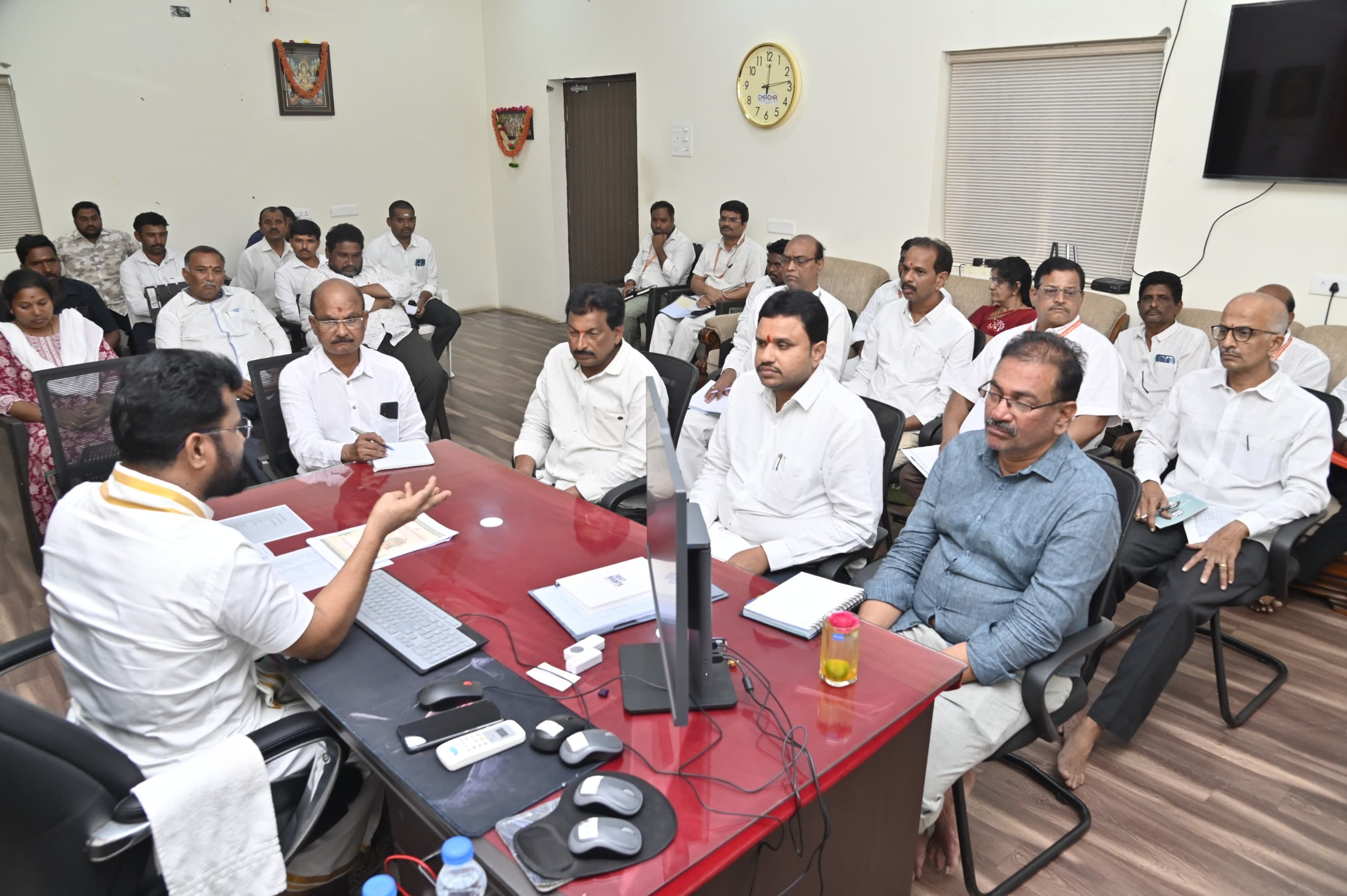 సోమవారం ఉదయం ఆయన ఆలయ సిబ్బంది, సెక్యూరిటీ, వివిధ సేవల కాంట్రాక్టర్లతో అత్యవసర సమీక్షా సమావేశం నిర్వహించారు.
