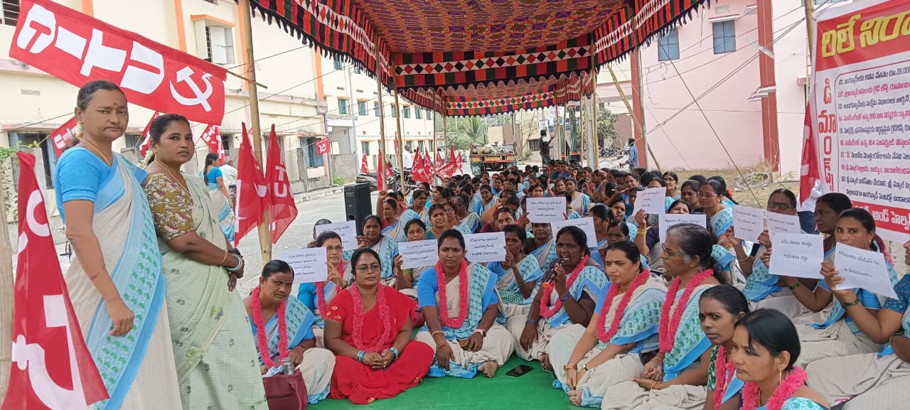 బాపట్ల జిల్లా: కేంద్రంలోని మోడీ ప్రభుత్వం నాలుగు లేబర్ కోట్లు తీసుకొచ్చి కార్మికులను వీధుల పాలు చేసిందని అదే విధంగా రాష్ట్ర ప్రభుత్వం అంగన్వాడీల సమస్యలు పరిష్కరించాలని హామీలిచి నెరవేర్చకుండా ఆర్థిక ఇబ్బందులకు గురి చేస్తున్నారని సమ్మె సందర్భంగా ఇచ్చిన హామీలను నెరవేర్చాలని కోరుతూ బాపట్ల లోని ఐసిడిఎస్ కార్యాలయం ఎదుట అంగన్వాడీ వర్కర్స్ అండ్ హెల్పర్స్ యూనియన్ (సిఐటియు) మంగళవారం రిలే నిరాహార దీక్షలు చేపట్టారు. ఈ దీక్షల్లో అంగన్వాడీలు కూర్చొన్నారు.అంగన్వాడీల సమస్యలు పరిష్కరించాలని గత ప్రభుత్వ హయాంలో 42 రోజుల పాటు సమ్మె నిర్వహించినట్లు తెలిపారు. ఆ సమయంలో కూటమి నాయకులు అంగన్వాడీల సమ్మెకు మద్దతు తెలిపినట్లు పేర్కొన్నారు. తాము అధికారంలోకి వస్తే అంగన్వాడీల జీతాలు, పెంచుతామని హామీ ఇచ్చినట్లు తెలిపారు. కూటమి ప్రభుత్వం అధికారంలోకి వచ్చి రెండు సంవత్సరాలు గడిచినా ఇంత వరకూ ఇచ్చిన హామీలు అమలు చేయలేదన్నారు.అంగన్వాడీల పట్ల రాష్ట్ర ప్రభుత్వం నిర్లక్ష్య ధోరణతో వ్యవహరిస్తుందని విమర్శించారు. అంగన్వాడీలకు కనీస వేతనం రూ. 26,000 ఇవ్వాలన్నారు. వేసవి సెలవుల జీవో విడుదల చేయాలని డిమాండ్ చేశారు.