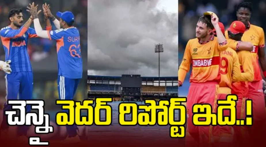 చెన్నై వాతావరణ కేంద్రం అంచనాలను ప్రకారం భారత్, జింబాబ్వే మ్యాచ్ కు వర్షం ముప్పు లేదని అర్థమవుతోంది. మేఘాల కారణంగా వెలుతురు సమస్య ఉండవచ్చు, కానీ, రాత్రి ప్లడ్ లైట్ల వెలుగులోనే మ్యాచ్ జరుగుతుంది కాబట్టి ఆ సమస్య ఉండదని క్రీడా నిపుణులు చెబుతున్నారు. ఇవాళ మ్యాచ్లో టీమిండియాకు భారీ విజయం అనివార్యమైంది.