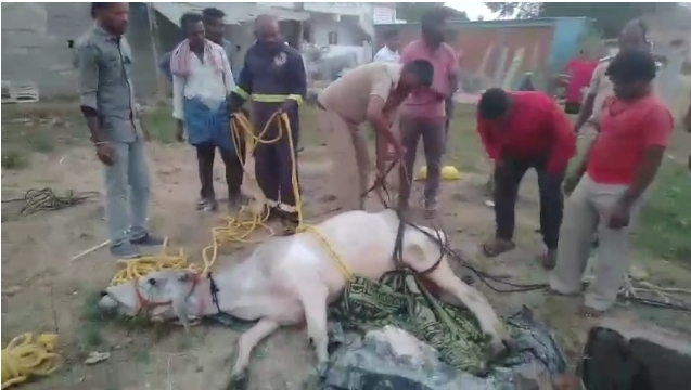 పుంగనూరు :పుంగనూరు పట్టణం పరిధిలో మూగజీవిని కాపాడిన అగ్నిమాపక సిబ్బంది