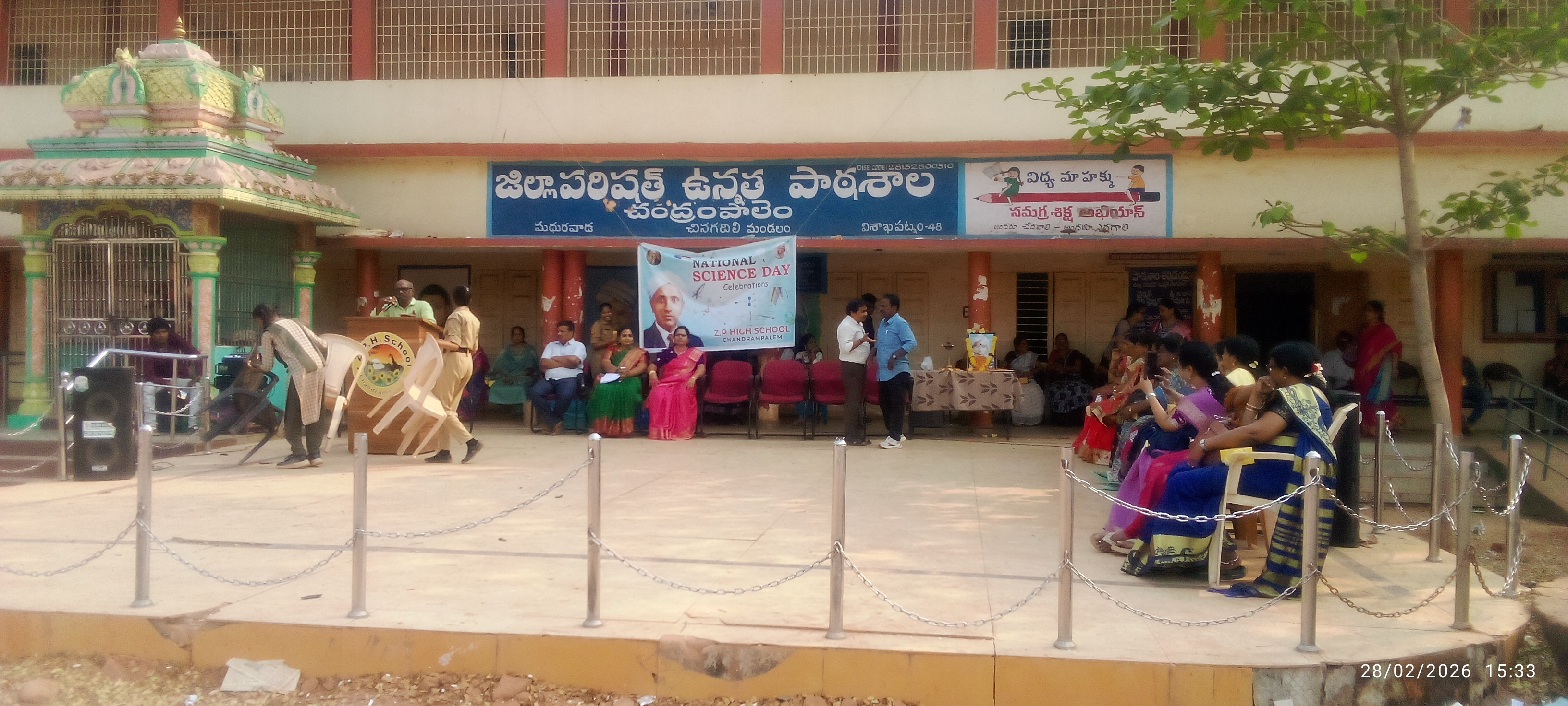 విశాఖ పట్నం జిల్లా విశాఖ రూరల్ చిన గదిలి మండలం చంద్రం పాలెం జిల్లా పరిషత్ ఉన్నత పాఠశాలలో జాతీయ సైన్స్ దినోత్సవం అత్యంత వైభోగంగా జరుపుకున్నారు.సీవీ రామన్ గారు రామన్ అపెక్ట్ దృగ్విషయం కనుగొన్న రోజు అని ప్రధానోపాధ్యాయులు మలుగు వెంకట్రావు గారు చెప్పారు.మూడు వేల అరవై మంది విద్యార్ధిని.విద్యార్థులు .100మంది ఉపాధ్యాయులు ఉన్నారు. పిల్లలకు వ్యాచ రచన పోటీలు. క్విజ్ పోటీలు 30మంది పిల్లలు. వకులత్వం. ప్రాజెక్టులు జరిగాయి. ముందుగా సివి రామన్ పోటో కు పూలమాల వేసి ఆయన సాధించిన అంశాలను పిల్లలకు చక్కగా వివరించారు నిత్య జీవితంలో సైన్స్. ఏ ఐ ప్రాధాన్యత గురించి వివరించారు. అనంతరం వివిధ కార్యక్రమాల పోటీలు నిర్వహించి పిల్లలకు బహుమతులు అందజేసారు. ఈ కార్యక్రమంలో స్టాఫ్ సెక్రటరీ లు సంగు శ్రీనివాస రావు. అడ రీ లక్ష్మి హాజరైనారు