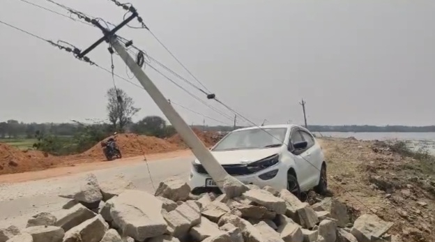 పుంగనూరు పట్టణంలో సోమవారం బెంగళూరు రోడ్డు వైపు నుంచి వస్తున్న కారు అదుపుతప్పి విద్యుత్ స్తంభాన్ని ఢీకొట్టింది. ఈ ఘటనలో విద్యుత్ స్తంభం వాలిపోయింది. అదృష్టవశాత్తూ విద్యుత్ సరఫరా ఆగిపోవడంతో పెను ప్రమాదం తప్పింది. ప్రమాదం జరిగిన వెంటనే కారు డ్రైవర్ వాహనాన్ని వదిలి పారిపోయాడు. ఘటన స్థలానికి చేరుకున్న విద్యుత్ శాఖ అధికారులు మరమ్మతులు చేపట్టారు# కొత్తూరు మురళి.