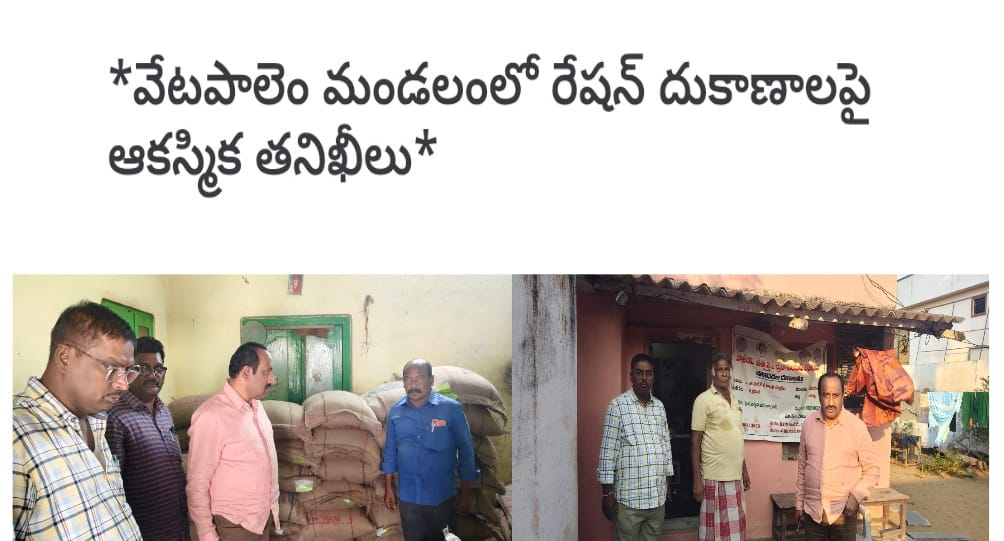 చీరాల: వేటపాలెం మండల పరిధిలోని రేషన్ దుకాణాలపై బుధవారం రెవెన్యూ డివిజనల్ అధికారులు ఆకస్మిక తనిఖీలు నిర్వహించారు. మొత్తం ఎనిమిది రేషన్ దుకాణాలను పరిశీలించగా, ఆరు దుకాణాల్లో నిర్దేశిత పరిమితిని మించిన నిల్వలు ఉన్నట్లు గుర్తించారు.