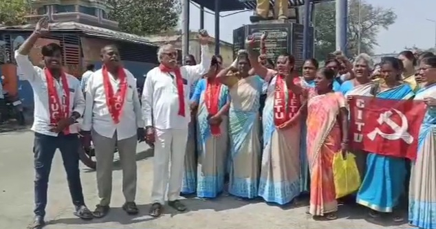 విజయవాడ ధర్నా చౌక్ లో అనుమతితో నిరసన తెలుపుతున్న అంగన్వాడీ కార్యకర్తలను అరెస్టు చేయడం దారుణమని పుంగనూరు అంగన్వాడీ వర్కర్స్, హెల్పర్స్ యూనియన్ నాయకులు మంగళవారం ఆగ్రహం వ్యక్తం చేశారు. ప్రభుత్వ వైఖరికి నిరసనగా, పుంగనూరు ఐసీడీఎస్ ప్రాజెక్టు పరిధిలోని పలువురు అంబేడ్కర్ విగ్రహం వద్ద నిరసన తెలిపారు. అరెస్టు చేసిన కార్యకర్తలను వెంటనే విడుదల చేయాలని డిమాండ్ చేశారు. ఈ కార్యక్రమంలో ఏఐటియుసి, సిపిఐ నాయకులు వెంకట రమణారెడ్డి, మున్న తదితరులు పాల్గొన్నారు# కొత్తూరు మురళి .