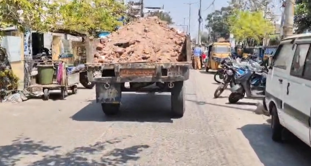 చీరాల పట్టణం లో రద్దీగా ఉండే నగర రోడ్లపై నిబంధనలకు విరుద్ధంగా ప్రయాణిస్తున్న భారీ వాహనాలు సామాన్య ప్రజల ప్రాణాలకు ముప్పుగా మారుతున్నాయి. తాజాగా ఒక ట్రాక్టర్ ట్రాలీ నిండుగా, ఎటువంటి రక్షణ కవచం తార్పాలిన్ వంటివి లేకుండా మట్టి, రాళ్లను తరలిస్తూ కనిపించింది. ట్రాలీలో మట్టిని దాని సామర్థ్యం కంటే ఎక్కువగా నింపడం వల్ల, ప్రయాణంలో ఆ మట్టి రోడ్డుపై పడే అవకాశం ఉంది. దీనివల్ల వెనుక వచ్చే ద్విచక్ర వాహనదారులు జారి పడిపోయే ప్రమాదం ఉంది. అంతేకాకుండా, గాలికి మట్టి రేణువులు ఎగిరి వాహనదారుల కళ్లలో పడటంతో తృటిలో ప్రమాదాలు తప్పిన సందర్భాలు కూడా ఉన్నాయి.