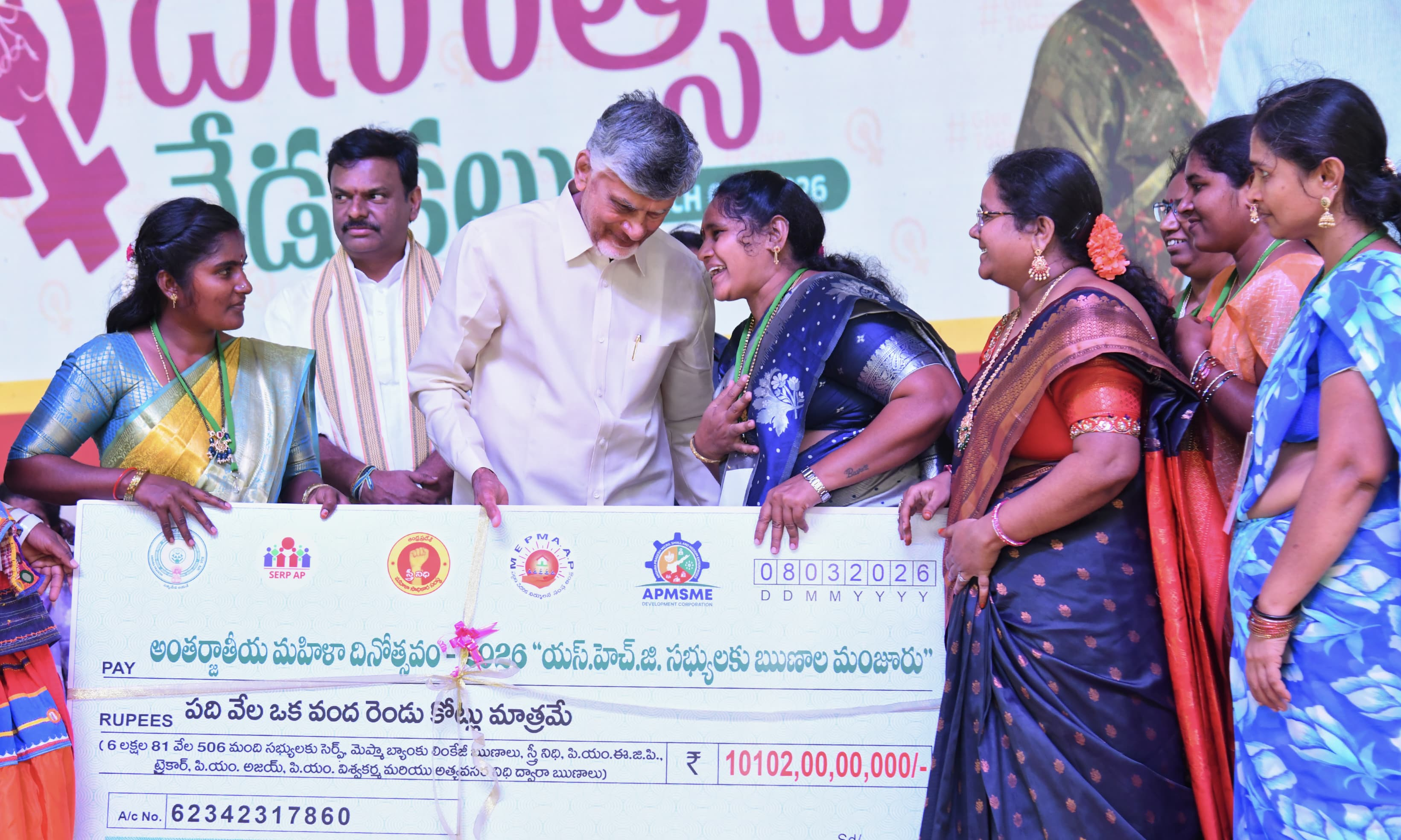 అమరావతి పరేడ్ గ్రౌండ్లో నిర్వహించిన అంతర్జాతీయ మహిళా దినోత్సవంలో ముఖ్యమంత్రి చంద్రబాబు నాయుడు గారు పాల్గొన్నారు. ఈ సందర్భంగా ఐదుగురు ఉత్తమ ఎంట్రపెన్యూర్లకు వేదికపై సన్మానం చేసి అభినందించారు. అంతర్జాతీయ మహిళా దినోత్సవాన్ని పురస్కరించుకుని రూ.10,100 కోట్ల మెగా చెక్కును స్వయం సహాయక సంఘాలకు అందించారు. అనంతరం కార్యక్రమాన్ని ఉద్దేశించి ముఖ్యమంత్రి చంద్రబాబు ప్రసంగించారు. ఈ కార్యక్రమంలో మంత్రులు, బీజేపీ రాష్ట్ర అధ్యక్షులు మాధవ్, పెద్ద ఎత్తున మహిళలు పాల్గొన్నారు.