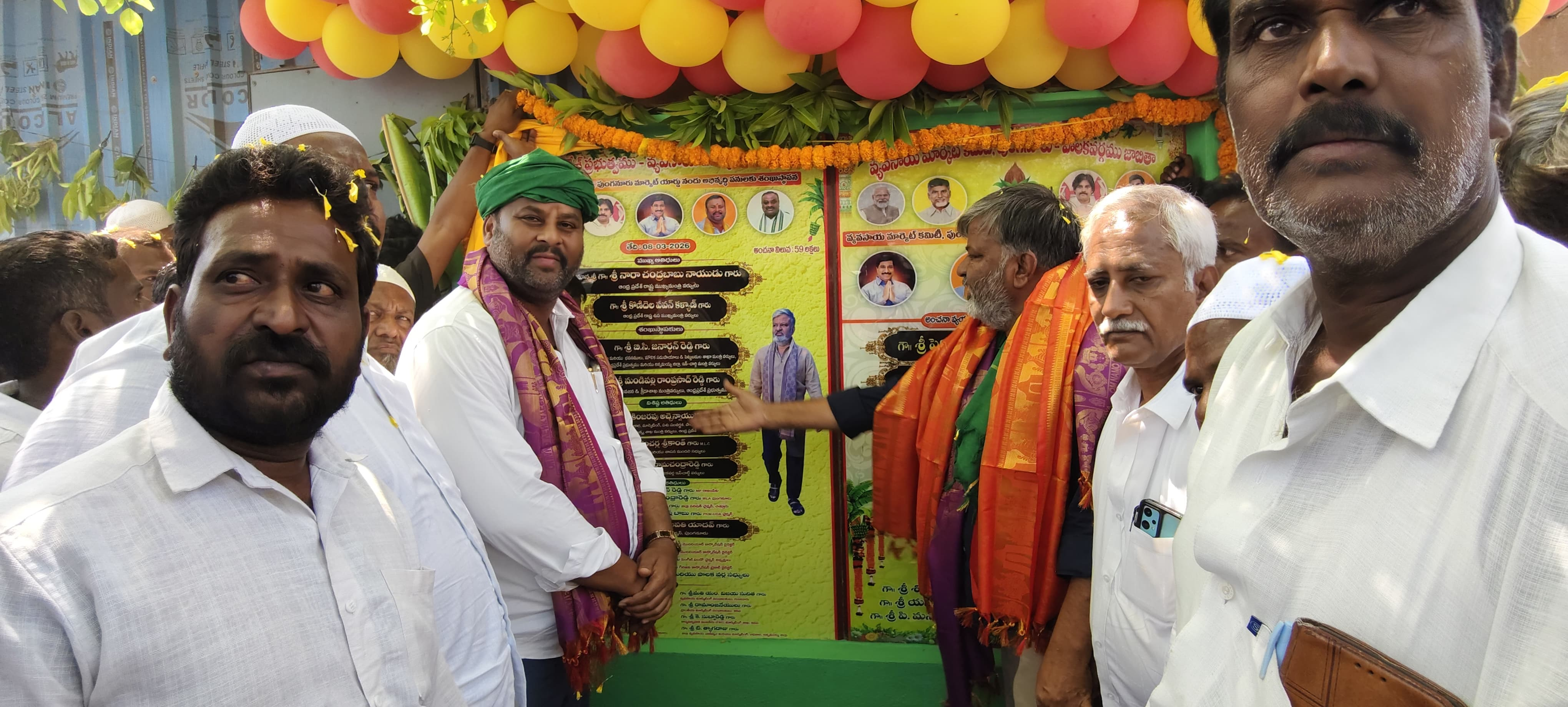అన్నమయ్య జిల్లా పుంగనూరు పట్టణంలోని వ్యవసాయ మార్కెట్ యార్డ్ లో చేపట్టిన వివిధ అభివృద్ధి పనులను రాష్ట్ర రవాణా యువజన మరియు క్రీడా శాఖ మంత్రి మండిపల్లి రాంప్రసాద్ రెడ్డి గారు ఆదివారం ప్రారంభించారు పుంగనూరు టౌన్ లోని వ్యవసాయ మార్కెట్ సముదాయంలో 59 లక్షల రూపాయల వ్యయంతో నిర్మించిన పలు అభివృద్ధి పనులకు పుంగనూరు నియోజకవర్గ ఇన్చార్జ్ చల్లా రామచంద్రారెడ్డి గారితో కలిసి మంత్రి గారు ప్రారంభించారు ఈ సందర్భంగా మంత్రి గారు మాట్లాడుతూ రైతులకు మెరుగైన సౌకర్యాలు కల్పించడం ప్రభుత్వ ప్రధాన లక్ష్యం అని తెలిపారు మార్కెట్ యార్డుకు అభివృద్ధి ద్వారా రైతులు తమ పంటను సులభంగా విక్రయించుకునే వాతావరణం కల్పించడమే ప్రభుత్వ ఉద్దేశం అని పేర్కొన్నారు