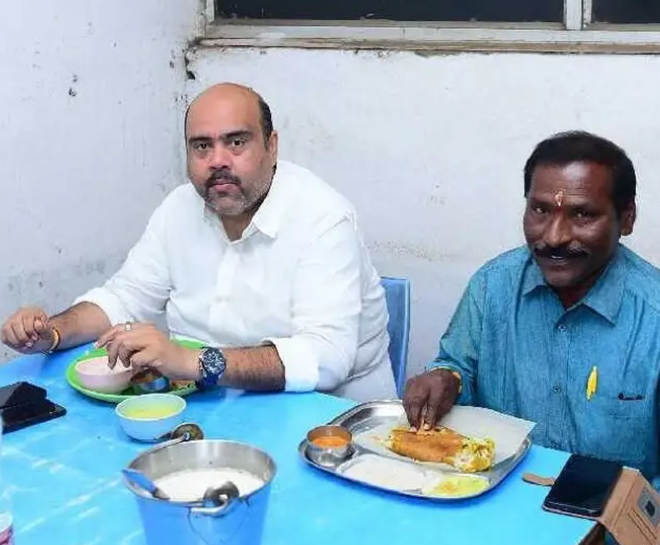 ప్రజా సేవలో నిత్యం బిజీగా ఉండే ఎమ్మెల్యే బేబినాయన సాధారణ వ్యక్తిలా హోటల్కు వెళ్లి టిఫిన్ చేశారు.వివిధ కార్యక్రమాలకు వెళ్లే బేబినాయన బొబ్బిలి కోర్టు జంక్షన్లో ఉన్న ఓ హోటల్కు వెళ్లి టిఫిన్ చేయడంతో అక్కడ ఉన్నవారంతా ఆశ్చర్యపోయారు. రాజుల కుటుంబానికి చెందిన బేబినాయన హంగు, ఆర్భాటం లేకుండా జీవనం సాగిస్తున్నారని ప్రజలు అంటున్నారు.