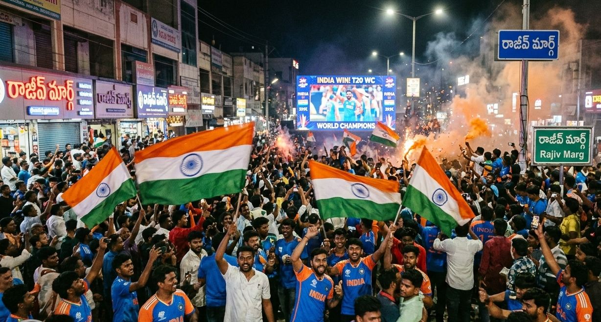కడప : టీ-20 వరల్డ్ కప్ ఫైనల్స్లో న్యూజిలాండ్ జట్టుపై భారత జట్టు విజయం సాధించడంతో జిల్లా వ్యాప్తంగా క్రికెట్ అభిమానులు సంబరాలు చేసుకు న్నారు. కడప నగరంలోని రాజీవ్ మార్గ్ వద్ద ఎల్డీ స్క్రీన్ ఏర్పాట్లు చేయడంతో పెద్ద సంఖ్యలో ప్రజలు ఆదివారం సాయంత్రం నుంచే అక్కడికి చేరుకుని వీక్షించారు. కడప ఎమ్మెల్యే మాధవి, తెదేపా పొలిట్ బ్యూరో సభ్యుడు శ్రీనివాసులరెడ్డిలు అక్కడికి చేరుకుని మ్యాచ్ను వీక్షించారు. జాతీయజెండాను ఎగుర వేసి జోష్ నింపారు.