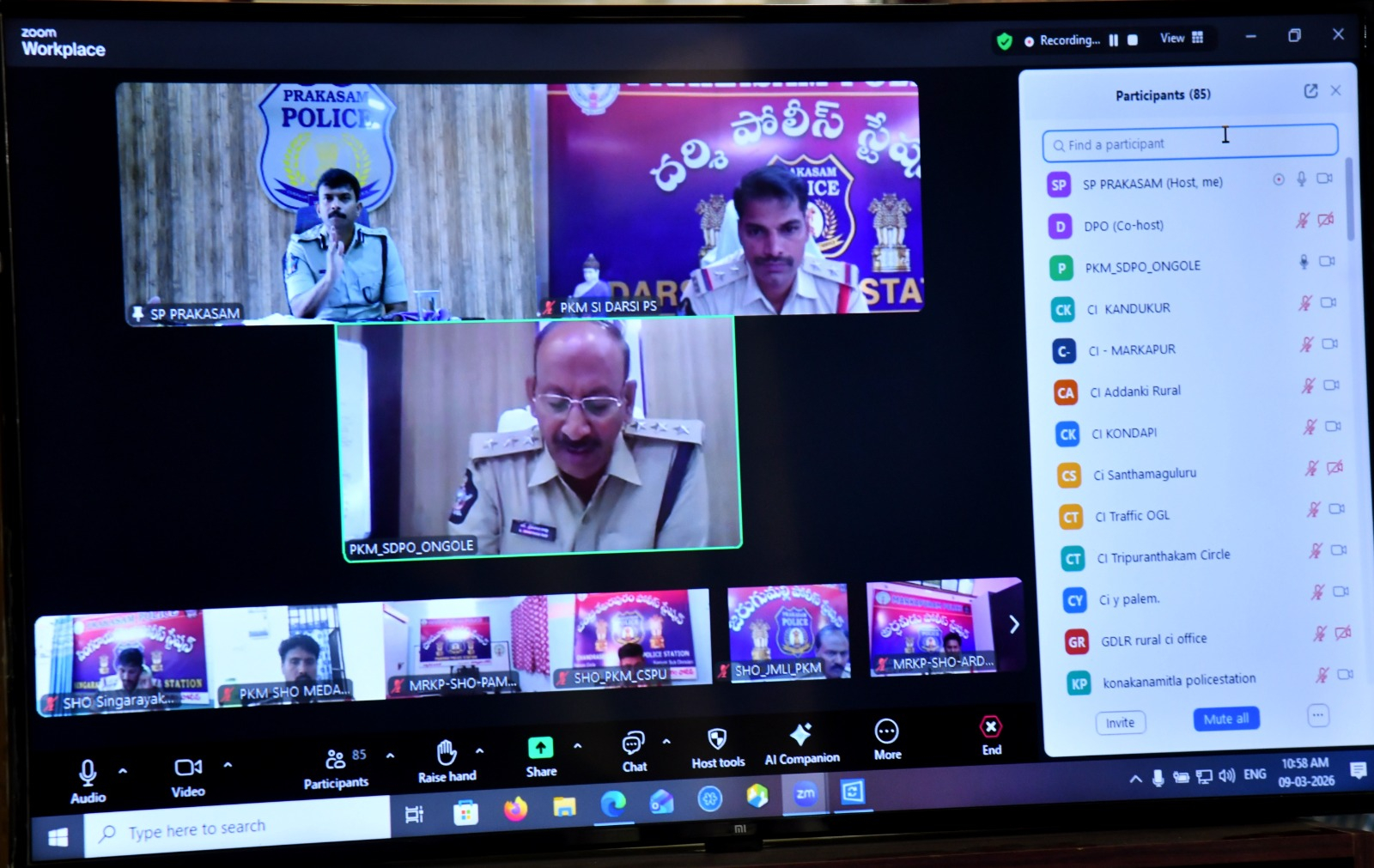 మిస్సింగ్ కేసులు, NBWలు, మహిళలకు సంబంధించిన కేసులు, రోడ్డు ప్రమాదాల నివారణ, అలాగే స్వర్ణాంధ్ర విజన్ కీ పెర్ఫార్మెన్స్ ఇండికేటర్స్ వంటి అంశాలపై సోమవారం జిల్లా పోలీస్ కార్యాలయంలో ఉమ్మడి ప్రకాశం జిల్లా డీఎస్పీలు, సీఐలు, ఎస్సైలతో ఎస్పీ గారు వీడియో కాన్ఫరెన్స్ ద్వారా సమావేశం నిర్వహించారు. ఈ సందర్భంగా పలు అంశాలపై పోలీస్ అధికారులను ఆరా తీసి, తగిన సూచనలు, సలహాలు తెలియజేసారు.