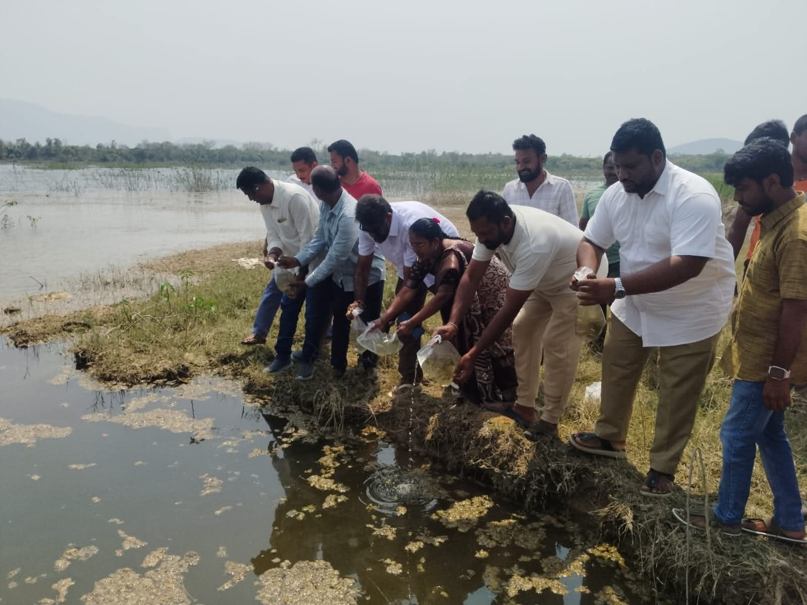 చేప పిల్లలు విడుదల చేసిన టిడిపి మండలాధ్యక్షుడు చప్పిడి రమేష్ నాయుడు