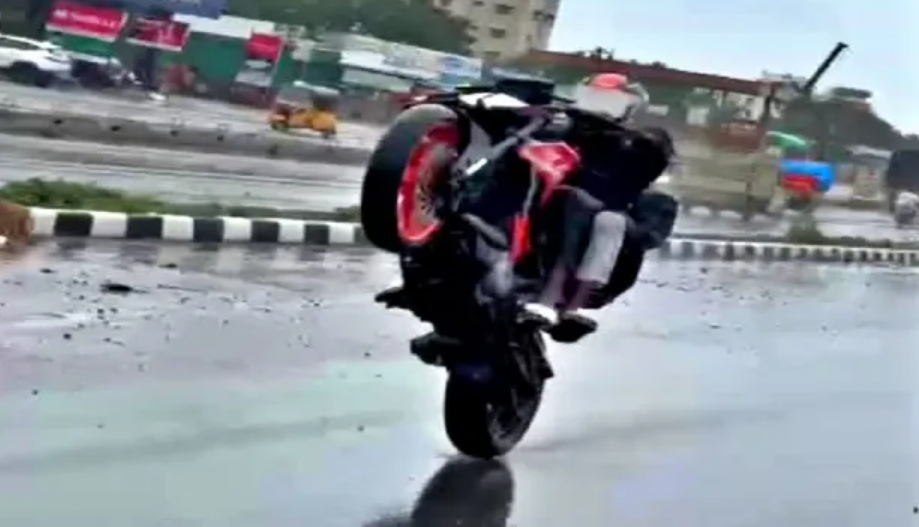 మంగళవారం రాత్రి బి.కొత్తకోటలో నలుగురు మైనర్ యువకులు ఒకే బైక్పై వేగంగా వెళ్తూ ప్రమాదకర విన్యాసాలు చేశారు. పట్టణంలోని బైపాస్ రోడ్డు, దిగువ బస్టాండ్లలో ఈ ఘటన చోటుచేసుకుంది. రోడ్డుపై వెళ్తున్న పాదచారులు, స్థానికులు వారు కింద పడిపోతారని భయపడ్డారు. తల్లితండ్రులు మైనర్లకు బైక్లు ఇవ్వకుండా పోలీసులు కౌన్సిలింగ్ ఇవ్వాలని స్థానికులు కోరుతున్నారు
