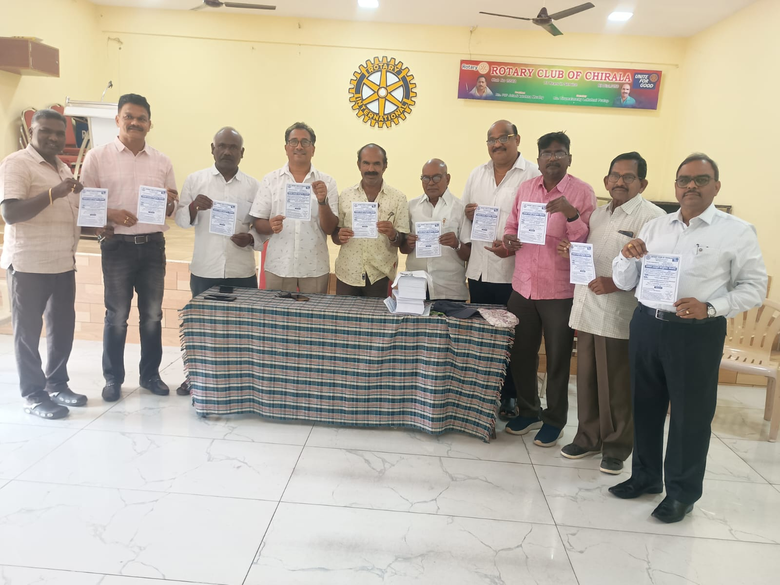 24-3-26,మంగళవారం, రోటరీ క్లబ్ ఆఫ్ చీరాల,ఖమ్మం రోటరీ క్లబ్ సంయుక్త ఆధ్వర్యంలో జరిగే ఉచిత క్యాన్సర్ నిర్ధారణ శిబిరం నకు సంబంధించి కరపత్రం ఈరోజు రోటరీ కమ్యూనిటీ హల్ నందు విడుదల చేసినారు.ప్రెసిడెంట్ జాలాది కృష్ణమూర్తి మాట్లాడుతూ హైదరాబాద్ నందమూరి బసవ తారకం ఇండో - అమెరికన్ క్యాన్సర్ హాస్పటల్ మరియు ఇన్స్టిట్యూట్ వారి భారీ కార్యక్రమం ఉదయం గం. 9-00 ల నుండి సాయంత్రం గం. 4-00 ల వరకు నిర్వహిస్తున్నామని,6 మంది డాక్టర్లు,12మంది స్టాఫ్ విచ్చేసి,200 మందికి ఉచితముగా అవసరమయిన వైద్య పరీక్షలు చేస్తారని తెలియజేశారు.కోటి రూపాయలు విలువ గల పరికరాలు బస్ తో బాటు వస్తున్నాయని,చీరాల ప్రాంత ప్రజలు ఈ సదవకాశాన్ని ఉపయోగించు కోవలసిందిగా కోరుచున్నామని తెలిపారు.