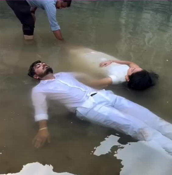 ప్రీ---వెడ్డింగ్ షూట్లలో కొత్తదనం కోసం ఓ జంట నీటి కుంటలో విగతజీవుల్లా పడి ఉన్న వీడియో ఇప్పుడు సోషల్ మీడియాలో దుమారం రేపుతోంది. మొదట చూసి భయపడిన జనం, అది షూటింగ్ అని తెలిసి మండిపడుతున్నారు. వికృత కాన్సెప్టులతో ప్రాణాల మీదకు తెచ్చుకోవద్దని నెటిజన్లు హెచ్చరిస్తున్నారు