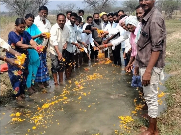 మంగళవారం పుంగనూరు మండలంలోని మోదుగులపల్లి పెద్ద చెరువుకు కృష్ణా జలాలు చేరాయి. ముఖ్యమంత్రి చంద్రబాబు ఇచ్చిన మాట ప్రకారం రైతులకు నీరందించినట్లు టిడిపి నాయకులు తెలిపారు. ఈ సందర్భంగా స్థానిక నేతలు, రైతులు ప్రత్యేక పూజలు నిర్వహించి, జలహారతి ఇచ్చారు. ఈ చెరువు ఆయకట్టు కింద దాదాపు 6 ఎకరాలలో రైతులు పంటలు సాగు చేస్తున్నారు# కొత్తూరు మురళి.