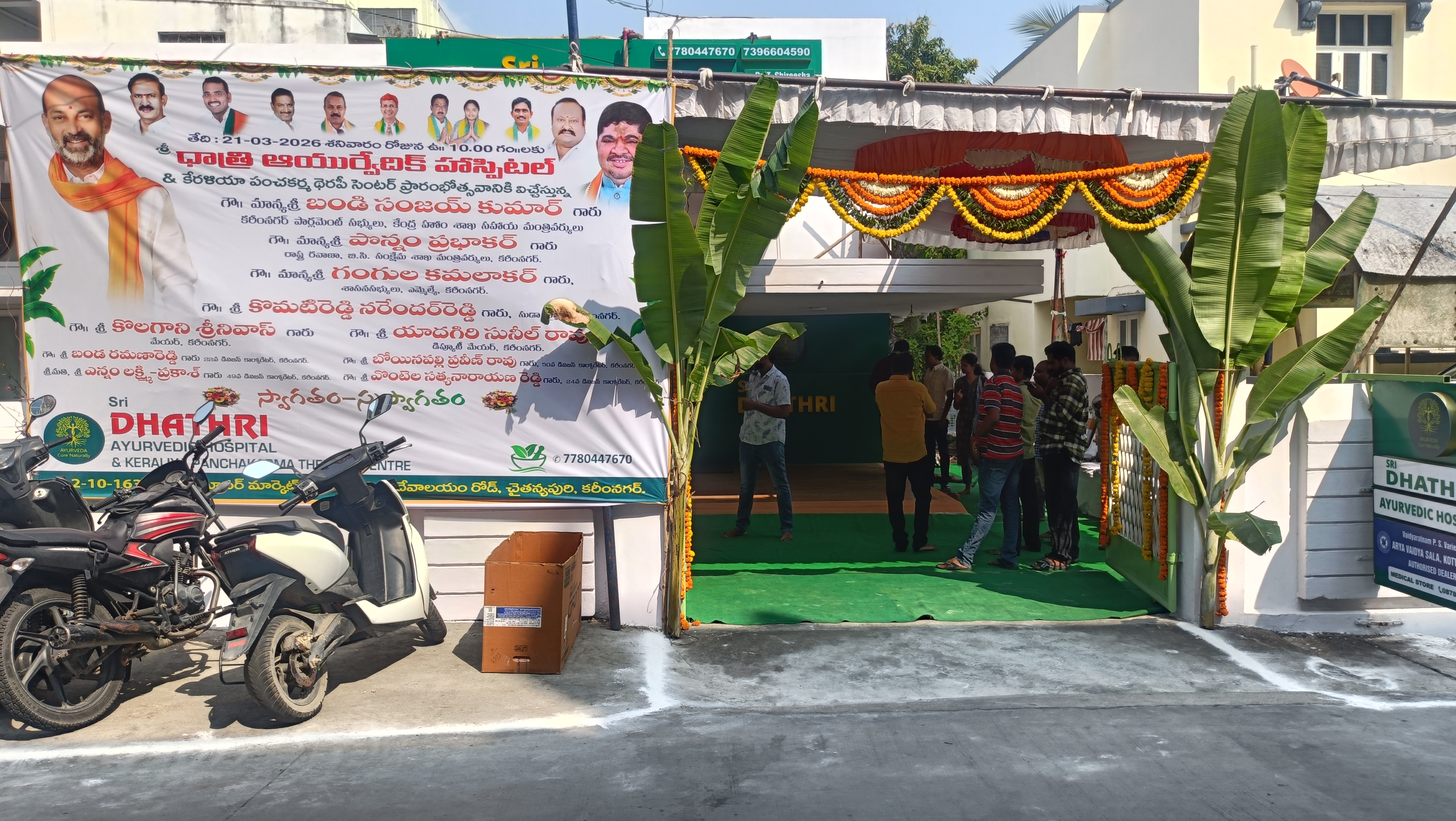 కరీంనగర్ జిల్లా పట్టణం లోనీ చైతన్యపురి కాలనీ , మహాశక్తి ఆలయం దగ్గర ధాత్రి ఆయుర్వేద హాస్పిటల్ ను బిజెపి కేంద్ర సహాయ మంత్రి బండి సంజయ్ కుమార్ ప్రారంభించారు. మంత్రి మాట్లాడుతూ మానవుని మనుగడకు ఆయుర్వేదం అనేది ఒక భాగం, ఆయుర్వేదం ద్వారా దీర్ఘకాలిక రోగాలకు స్వస్తి పలకవచ్చు అని కొనియాడారు. హాస్పిటల్ మేనేజ్మెంట్ ఆయుర్వేదం ద్వారా సేవలు అందిస్తామని చెప్పారు. ఈ కార్యక్రమంలో నగర బిజెపి మేయర్ కొలగాని శ్రీనివాస్, బిజెపి కార్పొరేటర్లు, స్థానికులు తదితరులు పాల్గొన్నారు