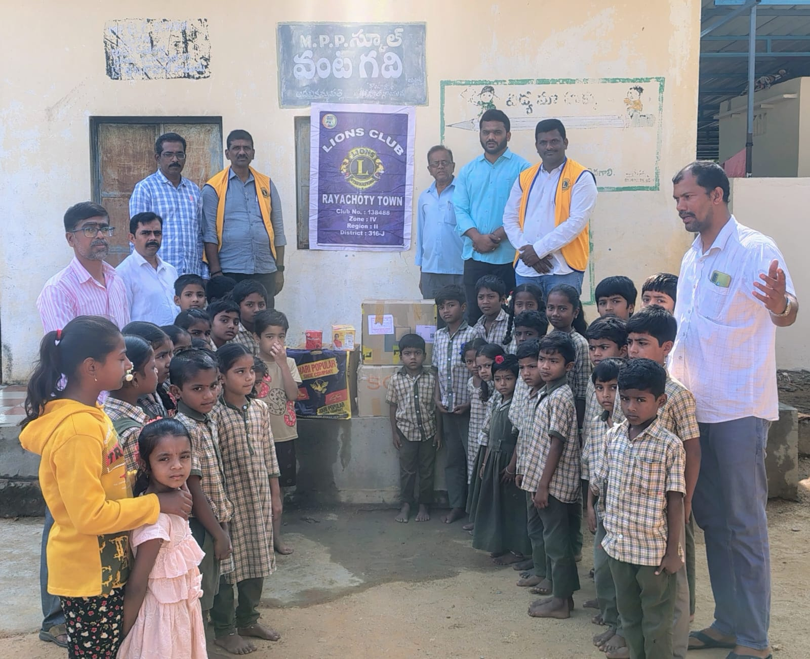 రాయచోటి లయన్స్ క్లబ్ ఆధ్వర్యంలో పేద పిల్లలకు షూ పంపిణి ప్రస్తుతం కాస్తున్న ఎండలు దృష్టిలో పెట్టుకొని సంబేపల్లి మండలంలోని మారుమూల ప్రాంతాలైన అడవి కమ్మపల్లె మోడల్ ప్రాథమిక పాఠశాల గండపల్లి ప్రాథమిక పాఠశాల ఇదిగో మాదిగ పల్లె ప్రాథమిక పాఠశాలలో చదువుతున్న పేద విద్యార్థులకు దాదాపుగా 120 జతలు ఉచితంగా లైన్స్ క్లబ్ రాయచోటి టౌన్ ఆధ్వర్యంలో పంపిణీ చేయడం జరిగింది . ఈ కార్యక్రమంలో అధ్యక్షులు లయన్ శ్యాం లయన్స్ క్లబ్ వ్యవస్థాపకుడు పిఎన్ హరినాథ్ రెడ్డి మాట్లాడుతూ ప్రతి ఒక్కరూ సేవా అలవర్చుకోవాలని అన్నారు లయన్స్ క్లబ్ ఆధ్వర్యంలో ఏదో నిత్యం ఏదో ఒక కార్యక్రమం పేద ప్రజల కోసం పేద విద్యార్థుల కోసం అవసరమైన సందర్భంలో స్పందిస్తూ ఉంటుందని అన్నారు