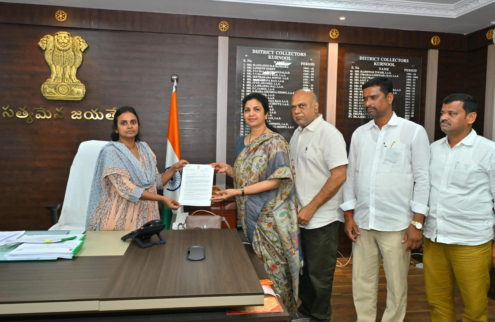 జిల్లా కలెక్టర్ గారికి వినతి పత్రం అందజేసిన శ్రీమతి బుట్టా రేణుక