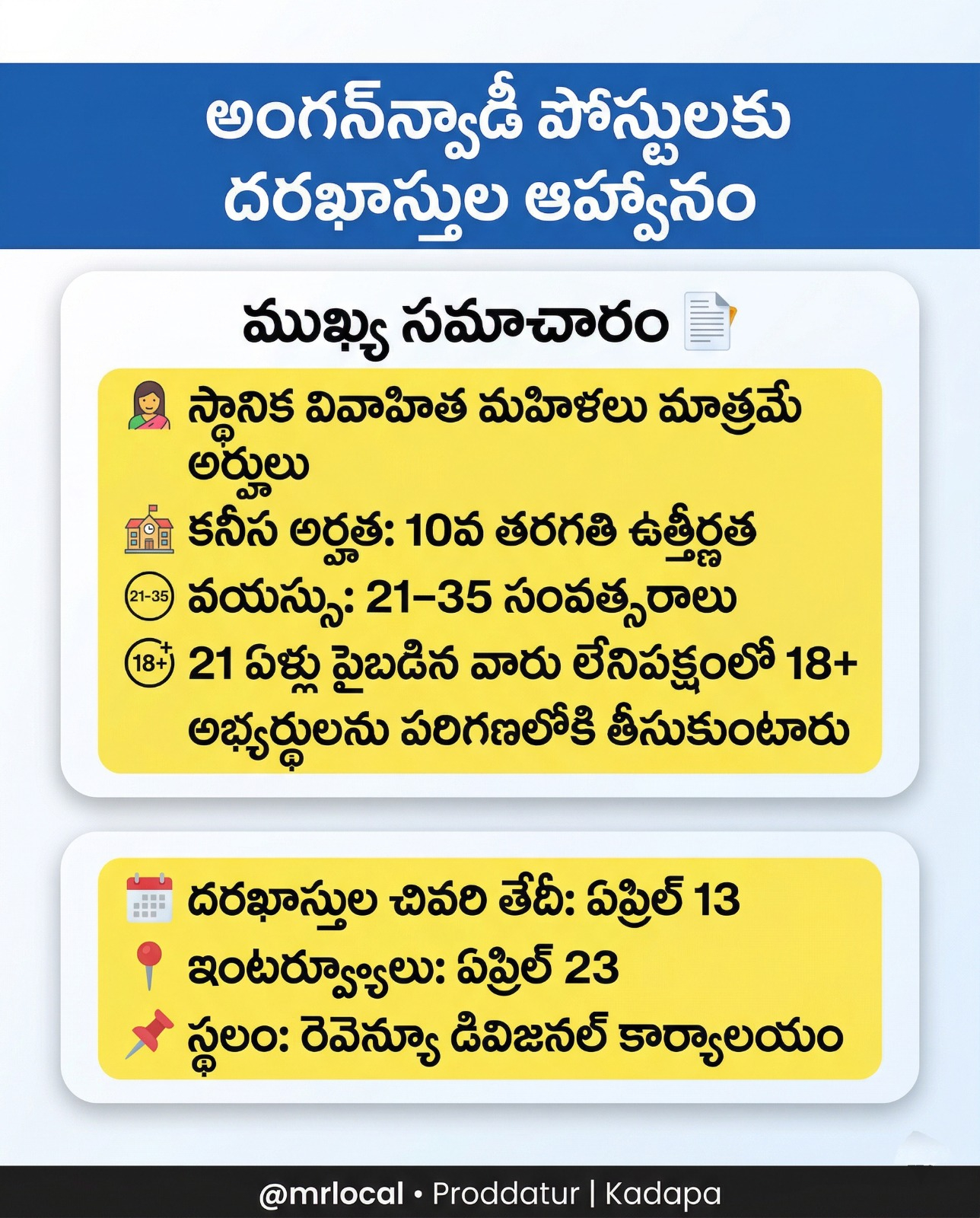 📍 దరఖాస్తులు సమర్పించాల్సిన చోటు: సంబంధిత ఐసీడీఎస్ (CDPO) కార్యాలయం.