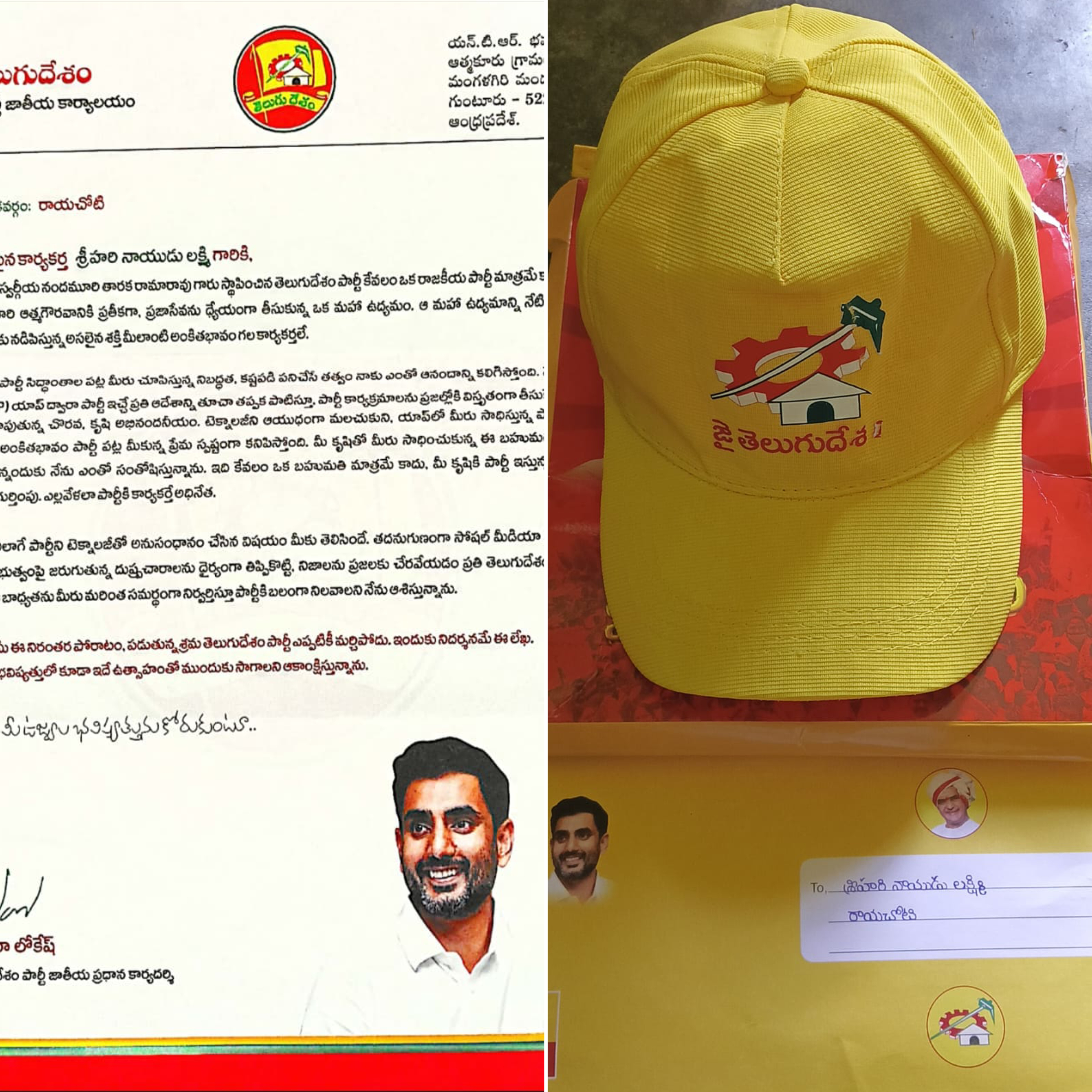 తెలుగుదేశం పార్టీ ఆవిర్భావ దినోత్సవం సందర్భంగా అభిమానికి చిరుకానుక పంపిన నారా లోకేష్ బాబు