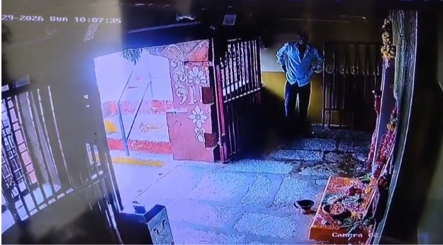 అన్నమయ్య జిల్లా, పుంగనూరు పట్టణంలోని శ్రీ సుగుటూరు గంగమ్మ ఆలయంలో గుర్తుతెలియని వ్యక్తి ఎల్ఈడి బల్బులను దొంగిలించిన దృశ్యాలు ఆదివారం సీసీ కెమెరాలో నమోదయ్యాయి. గత కొద్దిరోజులుగా ఆలయంలో ఎల్ఈడి బల్బులు, పూజ సామాగ్రి చోరీకి గురవుతున్నాయని ఆలయ నిర్వాహకులు తెలిపారు. సీసీ కెమెరాల పరిశీలనలో దొంగతనం చేసిన వ్యక్తి దృశ్యాలు రికార్డు అయ్యాయి# కొత్తూరు మురళి.