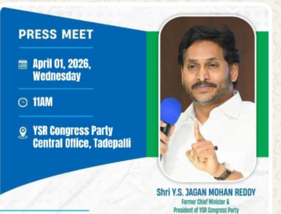 తాడేపల్లి లోని సెంటర్ ysrcp పార్టీ ఆఫీసు దగ్గర ప్రెస్ మీట్ నిర్వహించారు. రేపు అనగా ఏప్రిల్ 1st na మార్నింగ్ 11.00 గంటలకు నిర్వహించనున్నారు