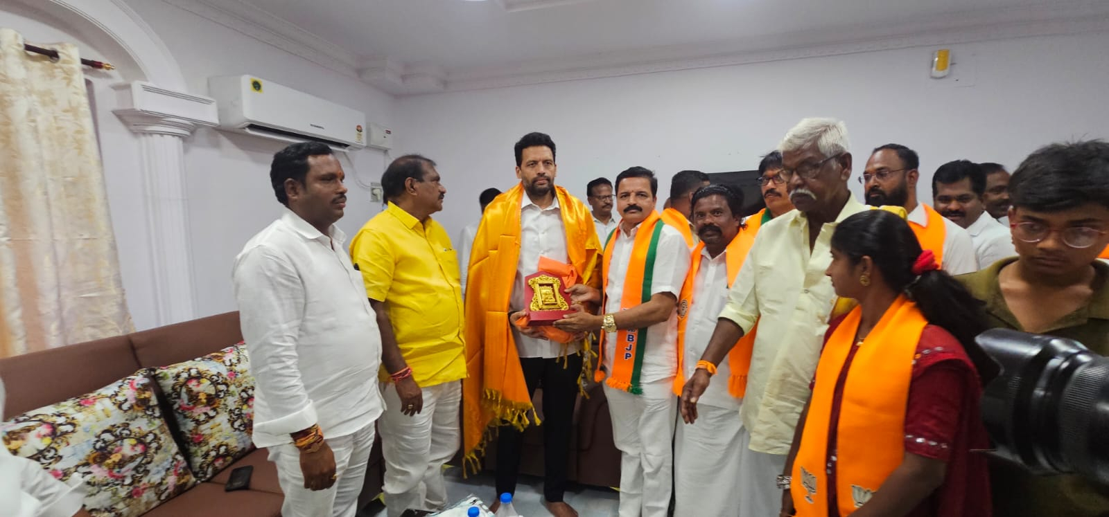 శ్రీ మంత్రి నిమ్మల రామానాయుడు గారిని మరియు మంత్రి శ్రీ టీజి భరత్ గారిని మర్యాదపూర్వకంగా కలిసిన ... బిజెపి జిల్లా అద్యక్షులు శ్రీ అక్కమతోట రామకృష్ణ  మరియు బీజేపీ పార్టీ జిల్లా అదికార ప్రతినిథి శ్రీ గురురాజ్ దేశాయ్ గారు.  ఈ సందర్బంగా బిజెపి జిల్లా అద్యక్షులు రామకృష్ణ గారు మంత్రితో మట్లాడుచూ జిల్లలో ఎక్కడా కూడా కూటమి థర్మాన్ని పాటించడం లేదని ఇకపొతే ఎమ్మిగనూరు తాలూకాలో ఇక్కడ కూటమి ప్రభుత్వం ఉందా లేక టిడిపి మత్రమే అదికారంలో ఉన్నదా అన్న సంశయం కూడా అక్కడి ప్రజలలో కలుగుతోందని జిల్ల ఇంచార్జి మంత్రితో ఆవేదనగా మాట్లాడారు.జిల్లా కేంద్రమైనటువంటి కర్నూలు టౌన్ లొని స్టేట్ గెస్ట్ హౌస్ లో మంగళవారం కర్నూలు జిల్లా ఇంచార్జి మంత్రి నిమ్మల రామానాయుడు, మంత్రి టీజి భరత్ జిల్లాకు సంబందించిన మూఁడు పార్టీల కూటమి అద్యక్షులు, ఎమ్మెల్యేలు మరియు మూడుపార్టీల అసెంబ్లి ఇంఛార్జులతో సమవేశం ఏర్పాటు చేశారు.ఈ సమావేశానికి ఎమ్మిగనూరు అసెంబ్లి తరపున దేశాయ్ నెట్వర్క్ అదినేత మరియు జిల్లా అదికార ప్రతినిథి గురురాజ్ దేశాయ్ గారు హాజరైయ్యారు. కూటమి ప్రభుత్వంలో అధికారులు నిర్లక్ష్యం వలన ఎమ్మిగనూరు నియోజకవర్గంలోని అర్హులైన బిజెపి కార్యకర్తలకు పథకాలు అందడం లేదు అని, ఈ విషయం లో అర్హులైన బిజెపి కార్యకర్తలకు తక్షణమే పథకాలు అందే విధంగా అధికారులను ఆదేశించాలని గురురాజ్ దేశాయ్ ఇంచార్జి మంత్రిని కోరారు. అందుకు జిల్లా ఇంచార్జి మంత్రి గారు సానుకూలంగా స్పందింస్తూ ఈ విషయం మీద విచారణచేసి తక్షణమే ఉన్నతాధికారులకు సూచనలు చేస్తానని తెలియచేశారు.ఈ సమావేశంలో ఇంచార్జి,మంత్రి నిమ్మల రామానాయుడు మాట్లాడుతూ, సమావేశం యెక్క ముఖ్యఉద్దేశ్యం కూటమిలో భాగంగా జిల్లాలో బిజెపి, టిడిపి మరియు జనసేన పార్టిలు సమన్వయంతొ పనిచేస్తూ, కూటమిధర్మాలను పాటిస్తూ, కూటమి నాయకులకు మరియు కార్యకర్తలందరికీ సమన్యాయంచేస్తూ ముందుకెళ్లాలని వివరించారు. జిల్లాలోని కూటమి MLA లు ఈ విషయంలో ఎక్కడ కూడా సమస్యలు రాకుండా చూసుకోవాలని తెలియచేశారు.