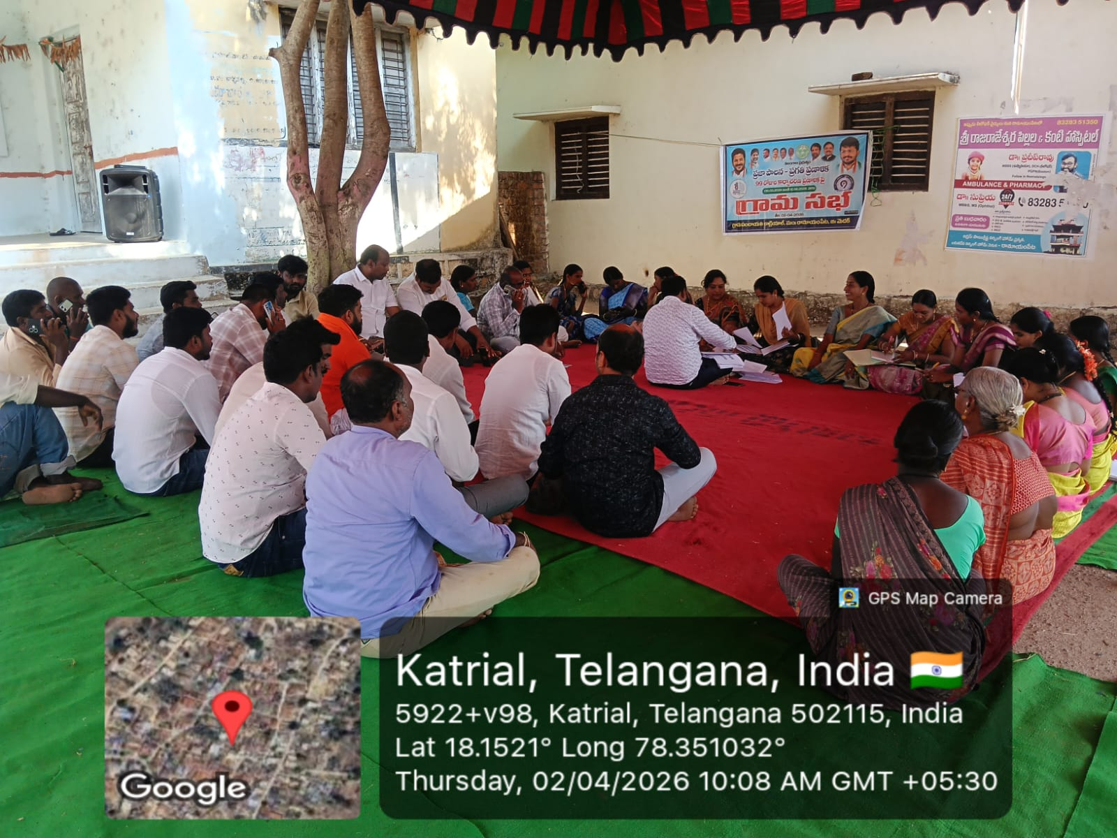రామాయంపేటలోని కాట్రియాలలో '99 రోజుల ప్రజాపాలన-ప్రగతి ప్రణాళిక' గ్రామసభ గురువారం సర్పంచ్ కొత్త స్రవంతి రాజేందర్ గుప్తా అధ్యక్షతన ఉత్సాహంగా జరిగింది. తొలుత ముఖ్యమంత్రి సందేశాన్ని కార్యదర్శి ధనలక్ష్మి చదివి వినిపించారు. ఈ సందర్భంగా ఆరు గ్యారంటీ పథకాల అమలు తీరుపై అధికారులు సమీక్షించారు. ప్రజా సమస్యల పరిష్కారమే లక్ష్యంగా ఈ కార్యక్రమం కొనసాగుతుందని సర్పంచ్ పేర్కొన్నారు.