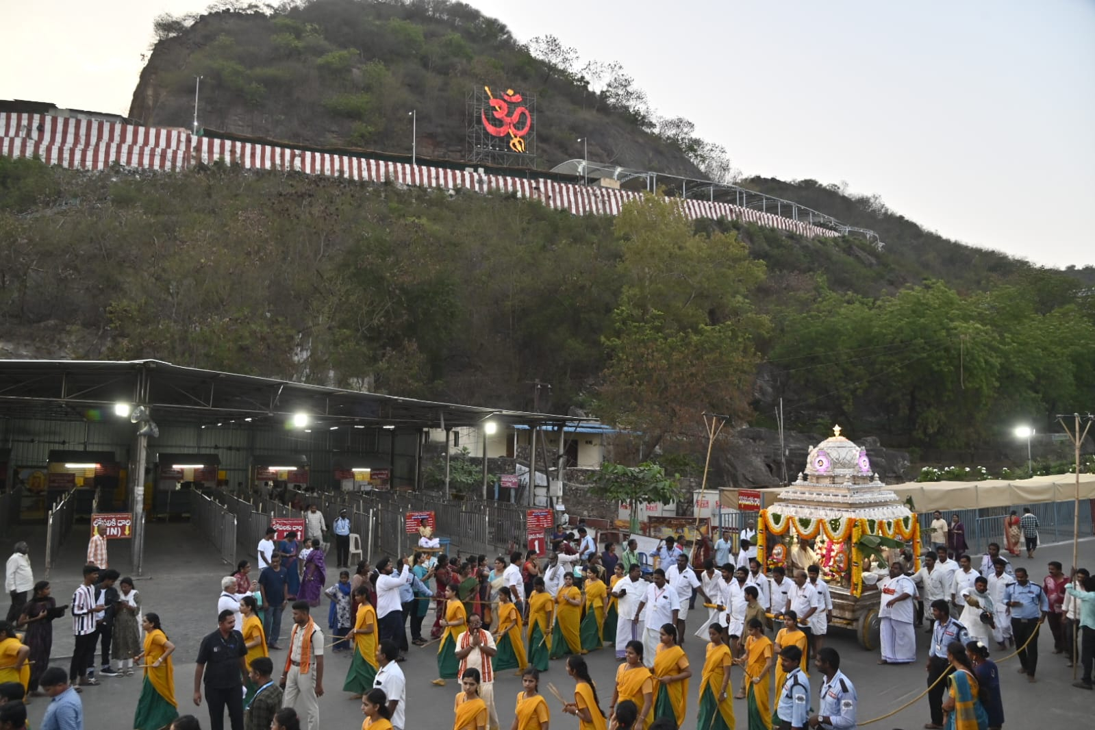 ఇంద్రకీలాద్రి పై వైభవంగా జరుగుతున్న శ్రీ దుర్గామల్లేశ్వరుల చైత్రమాస కళ్యాణ బ్రహ్మోత్సవాల సందర్బంగా వాహన సేవల్లో భాగంగా...సాయంత్రం 5 గంటలకు -శ్రీ మల్లేశ్వర మహా మండపం నుండి శ్రీ దుర్గా మల్లేశ్వరుల వెండిరధోత్సవం ప్రారంభం అయింది.