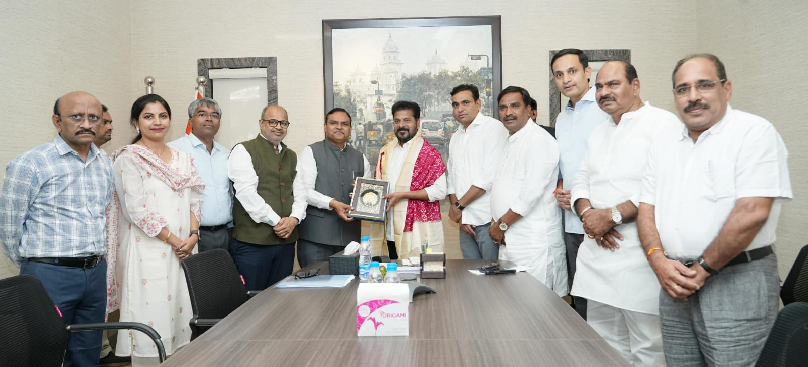 ముఖ్యమంత్రి శ్రీ ఎ. రేవంత్ రెడ్డి గారిని జూబ్లీ హిల్స్ నివాసంలో జాతీయ పాడి పరిశ్రమ అభివృద్ధి బోర్డు చైర్మన్ డాక్టర్ మీనేష్ షా గారు, మదర్ డైరీ డిప్యూటీ మేనేజింగ్ డైరెక్టర్ జయతీర్థ చారి గారు మర్యాదపూర్వకంగా కలిశారు. రాష్ట్రంలో పాడి పరిశ్రమ అభివృద్ధికి తీసుకోవలసిన అంశాలపై ఈ సందర్భంగా చర్చించారు.