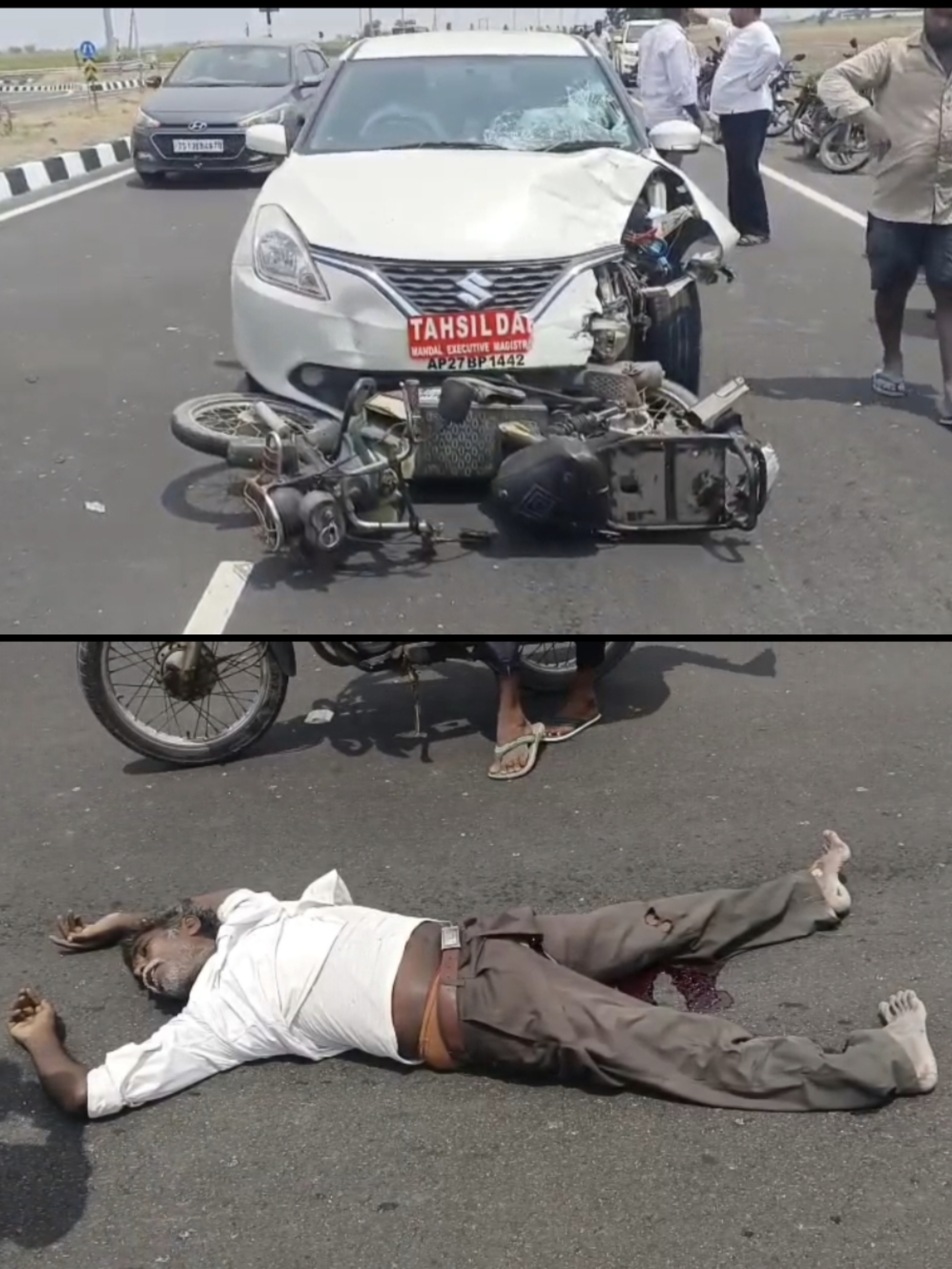 *ప్రమాదం లో 300 అడుగులు మేర మృతదేహాన్ని రోడ్డు పై ఈడ్చుకెరెళ్లిన తహసీల్దార్ బ్రహ్మయ్య కారు*.