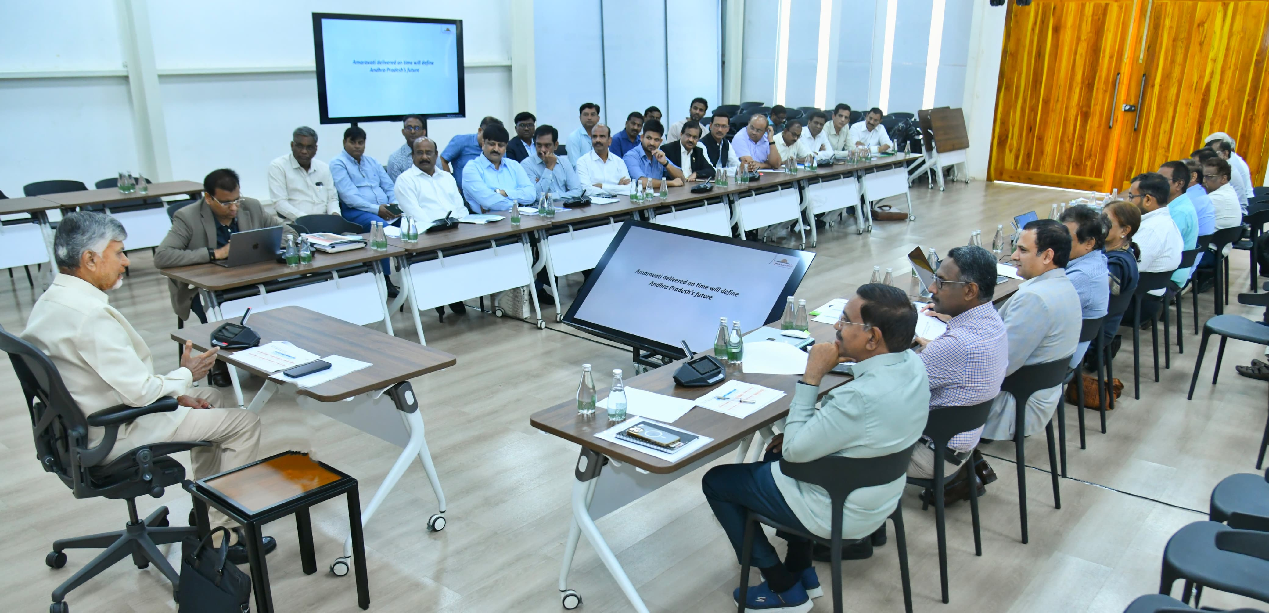 *అమరావతి, ఏప్రిల్ 4:-* అమరావతి రాజధాని నిర్మాణ పనులను సకాలంలో పూర్తి చేసి తీరాల్సిందేనని ముఖ్యమంత్రి నారా చంద్రబాబు నాయుడు స్పష్టం చేశారు. నిర్దేశించుకున్న సమయానికి పనులు పూర్తి చేసి ప్రధానితో ప్రారంభోత్సవం చేస్తామని.. ఈ మేరకు పనులు వేగంగా చేపట్టి పూర్తి చేసేలా కాంట్రాక్టర్లు చర్యలు తీసుకోవాలని సూచించారు. ఈ మేరకు అధికారులు కూడా పనుల్ని ఎప్పటికప్పుడు పర్యవేక్షించాలని ఆదేశించారు. రాజధాని నిర్మాణ పనులను ఓ కాంట్రాక్ట్ వర్క్ అన్నట్టగా భావించవద్దని... చరిత్రలో భాగస్వాములు అవుతున్నట్టుగా భావించాలన్నారు. శనివారం క్యాంప్ కార్యాలయంలో రాజధానిలో నిర్మాణ పనులు చేపట్టిన వివిధ కాంట్రాక్టు సంస్థలతో ముఖ్యమంత్రి చంద్రబాబు సమావేశమయ్యారు. ప్రస్తుతం రాజధానిలో వివిధ దశల్లో రూ.57,821 కోట్ల విలవైన పనులు ఉండగా... వాటిల్లో రూ. 50, 943 కోట్ల పనులు గ్రౌండ్ అయ్యాయని అధికారులు సీఎంకు వివరించారు. హౌసింగ్, రోడ్లు, ట్రంక్ ఇన్ఫ్రాస్ట్రక్చర్, ఎల్పీఎస్ మౌళిక సదుపాయలతో పాటు అసెంబ్లీ, హైకోర్టు, సచివాలయం వంటి ఐకానిక్ భవనాల నిర్మాణ పనుల పురోగతిని సీఎం సమీక్షించారు. ప్రస్తుతం రాజధాని నిర్మాణ పనుల్లో మొత్తంగా 20 వేల మంది కార్మికులు, నిపుణులు పని చేస్తున్నారని అధికారులు తెలిపారు. అలాగే ఏ నిర్మాణ సంస్థ ఎంత మేర పనులు చేసింది...లక్ష్యాన్ని ఎంత మేరకు చేరుకున్నారనే విషయంలో పనుల వారీగా సీఎం చర్చించారు. పనుల్లో జాప్యం చేస్తున్న కాంట్రాక్ట్ సంస్థల తీరు పట్ల సీఎం అసంతృప్తి వ్యక్తం చేశారు. ఈ క్రమంలో నిర్మాణ పనులకు అవసరమైన మ్యాన్ పవర్ విషయంలో కొన్ని ఇబ్బందులు ఉన్నాయని కాంట్రాక్టర్లు సీఎం దృష్టికి తెచ్చారు. వివిధ రాష్ట్రాల్లో ఎన్నికలు జరుగుతున్న దృష్ట్యా చాలా మంది కార్మికులు వెళ్లారని నిర్మాణ సంస్థ ప్రతినిధులు చెప్పారు. స్థానికంగా నైపుణ్యమున్న మ్యాన్ పవర్ ఎంత వరకు అందుబాటులో ఉంటుందో చూసి వినియోగించుకోవాలని సీఎం సూచించారు. రాజధాని పనుల్లో ఎంత మెషినరీని వినియోగిస్తున్నారనే అంశం పైనా సీఎం ఆరా తీశారు. రాజధాని పనుల్లో 5,580 మెషినరీ అవసరముండగా... ప్రస్తుతం 3767 మెషనరీ ఉందని అధికారులు వివరించారు. ఇవి కాకుండా హాట్ మిక్స్ 16, వెట్ మిక్స్ మెషిన్లు 36, ఆర్ఎంసీ మిషన్లు 34 ఉన్నాయని తెలిపారు. వారం, నెల వారీగా టార్గెట్‌లు పెట్టుకుని రాజధాని పనులు చేపట్టాలని సీఎం ఆదేశించారు. ప్రస్తుతం జరుగుతున్న పనులను... నిర్దేశించుకున్న టార్గెట్లను విశ్లేషిస్తే... వారానికి రూ. 941 కోట్ల విలువైన పనులు పూర్తి కావాల్సి ఉందని ముఖ్యమంత్రి అన్నారు. వచ్చే వర్షా కాలంలో పనులకు ఆటంకం కలిగే అవకాశం ఉంది కాబట్టి... ఆలోగానే చేపట్టాల్సిన పనులను జాప్యం లేకుండా పూర్తి చేయాలని సీఎం ఆదేశించారు. ఎక్కువ ప్ర