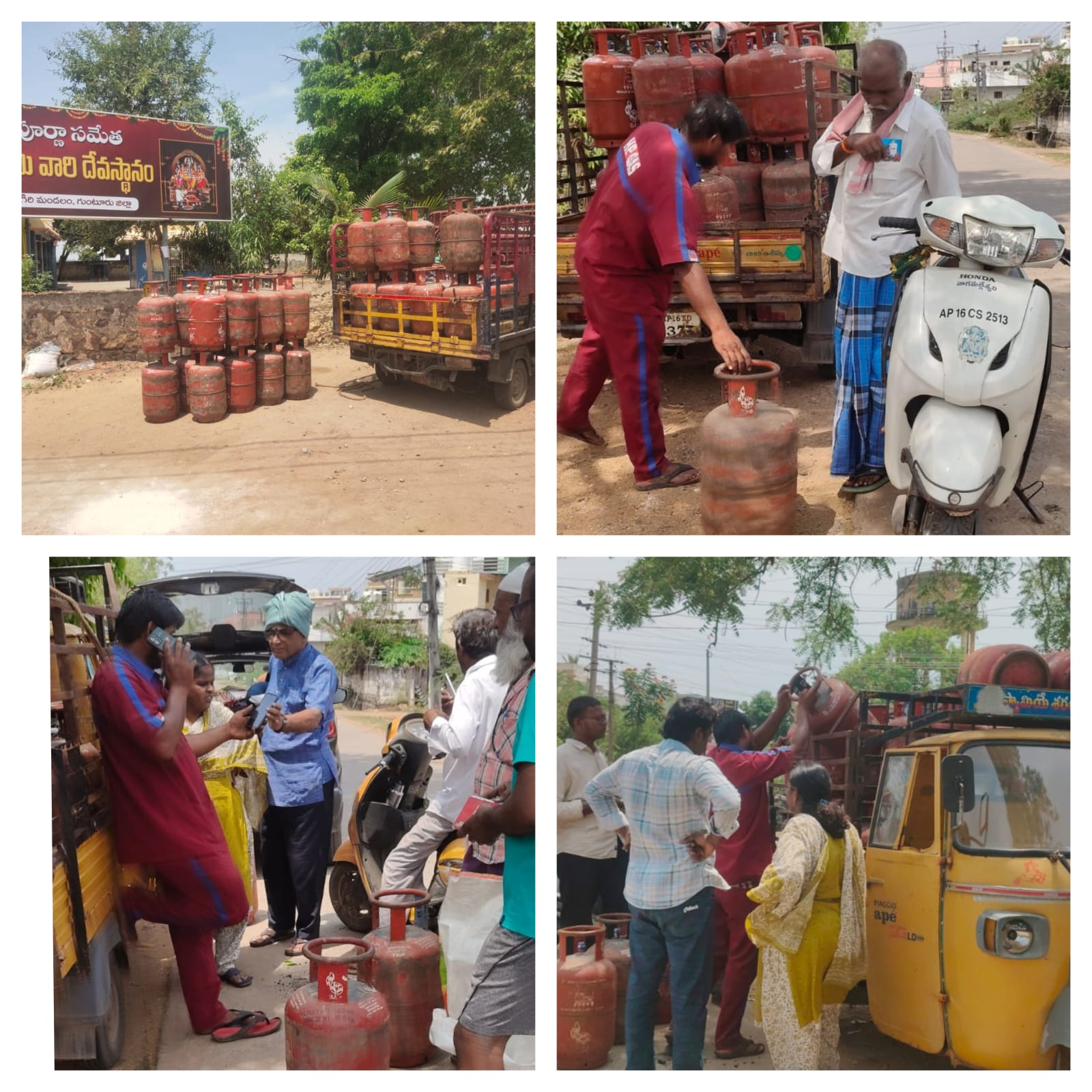 విదితమే. ప్రభుత్వ నిబంధనల మేరకు వినియోగదారులకు డోర్ డెలివరీ చేయించాల్సిన ఏజెన్సీ నిర్వాహకులు పట్టీ పట్టనట్టుగానే వ్యవహరిస్తున్నారు. అందులో భాగంగా మంగళగిరి నగరంలోని రాయల్ గ్యాస్ ఏజెన్సీ నిర్వాహకులు వినియోగదారులను నేటి వరకు ముప్పతిప్పలు పెడుతూనే ఉన్నారు. డెలివరీ బాయ్ ల చేత ఆటోల్లో సిలిండర్లను పంపించి చేతులు దులుపుకుంటున్నారు. మంగళగిరి తాడేపల్లి నగరపాలక సంస్థ పరిధి యర్రబాలెంకు రెండు ఆటోల్లో గ్యాస్ సిలిండర్లు డోర్ డెలివరీ నిమిత్తం పంపారు. అయితే డెలివరీ బాయ్ లు డోర్ డెలివరీ చేయకుండా ఒక ఆటోను శ్రీనగర్ కాలనీ వాటర్ ట్యాంక్ వద్ద , మరొక ఆటోను శివాలయం వద్ద పార్కింగ్ చేశారు. గ్యాస్ బుకింగ్ చేసిన వినియోగదారులకు డెలివరీ బాయ్ లు ఫోన్ చేసి ఆటో నిలిపియున్న కూడలిని చెప్పి ఖాళీ సిలిండర్ తీసుకువస్తే నిండు సిలిండర్ ఇక్కడే ఇచ్చివేస్తామని చెప్పారు. దీంతో కొందరు వినియోగదారులు అక్కడకు ఖాళీ సిలిండర్ ను తీసుకువచ్చి ఫుల్ సిలిండర్లను తీసుకువెళ్లగా మరి కొందరు వినియోగదారులు తాము అక్కడకు రాలేమని, దయచేసి డోర్ డెలివరీ చేయాలని వేడుకున్నారు. డోర్ డెలివరీ చేస్తున్న క్రమంలో గుర్తు తెలియని వ్యక్తులు ఆటోల వద్దకు వచ్చి ఫుల్ సిలిండర్లను తీసుకువెళ్లిపోతున్నారని, కావున డోర్ డెలివరీ ఇవ్వలేకపోతున్నామని సమాధానం చెప్పారు. యాజమాన్యం పోయిన సిలిండర్లకు సైతం తమ వద్ద నుంచి నగదు వసూలు చేస్తుందని, పైగా తమకు జీతాలు కూడా ఇవ్వడం లేదని డెలివరీ బాయ్ లు ఆవేదన వ్యక్తం చేశారు.