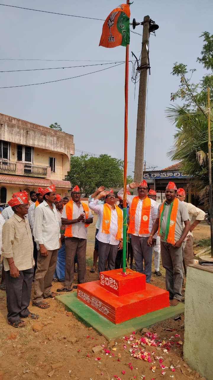 ఆధ్వర్యంలో,నిర్వహించిన ఈ కార్యక్రమానికి మండల భారతీయ జనతా పార్టీ అధ్యక్షుడు శరకణం రాజబాబు ముఖ్య అతిథిగా పాల్గొని భారతీయ జనతా పార్టీ జెండా ఆవిష్కరించారు. ఈ సందర్భంగా ఆయన మాట్లాడుతూ దేశంలో పేద ప్రజలకు మోడీ అందించిన పథకాలను వివరించారు. ప్రత్యక్ష, పరోక్ష రాజకీయాలను కూడా ప్రజలు మాట్లాడుకునే దిశ గా ఉన్నాయంటే మోడీ చలవే అన్నారు. ఈ కార్యక్రమంలో మండల ప్రధాన కార్యదర్శి కోనేటి శ్రీనివాసరావు,మండల ఓబిసి అధ్యక్షులు పెంటకోట సత్యనారాయణ,మండల కార్యదర్శిలు భీమనాధులు వీరబాబు,ఆడారి రామచంద్రరావు,మండల ఉపాధ్యక్షులు బుద్ధ సత్యనారాయణ,బిజెపి నాయకులు గోలి సుబ్బారావు, అరటా పెద్ద పోలీస్, బాలిమ్ రామకృష్ణ, అప్పారావు,వానపల్లి గంగాధర్,పలికిల సత్యనారాయణ, బొడ్డేటి చిన్నబ్బాయి,పప్పుల రాంబాబు, బొడ్డేటి బాబురావు,రాపేటి కోటేశ్వరరావు,నైదాన రవి, పిట్ట లోవ,కడియాల చిన్న, పెద్ద ఎత్తున బిజెపి కార్యకర్తలు పాల్గొన్నారు.