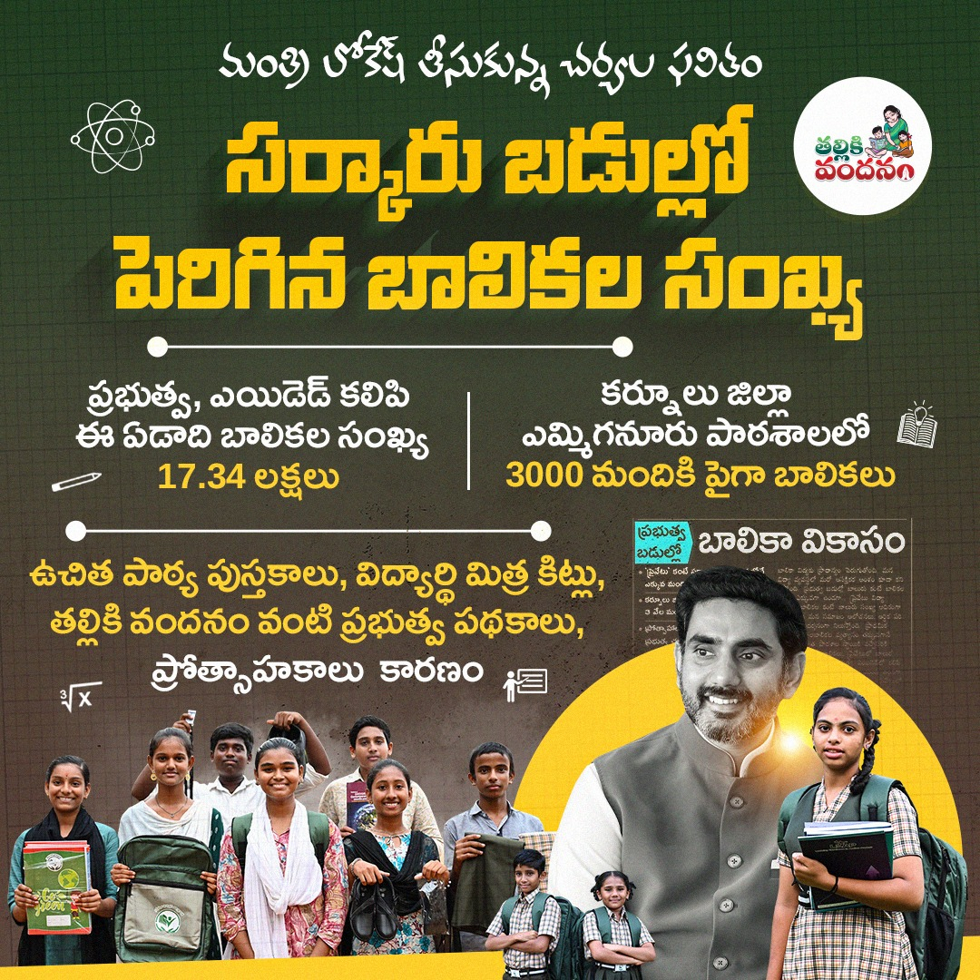 ప్రభుత్వం ప్రత్యేకంగా బాలికల కోసం ఉన్నత పాఠశాలలను ఏర్పాటు చేయడం, వారి కోసం ప్రత్యేకంగా సంక్షేమ వసతి గృహాలను కూడా ప్రవేశపెట్టడం... అన్ని సదుపాయాలతో ఇళ్ళకు దగ్గర్లోనే ప్రభుత్వ బడులు ఉండటం... ఉచిత పాఠ్య పుస్తకాలు, విద్యార్థి మిత్ర కిట్లు, తల్లికి వందనం వంటి పథకాల కారణంగా సర్కారు బడుల్లో చదివే బాలికల సంఖ్య ఈ ఏడాది పెరిగింది.