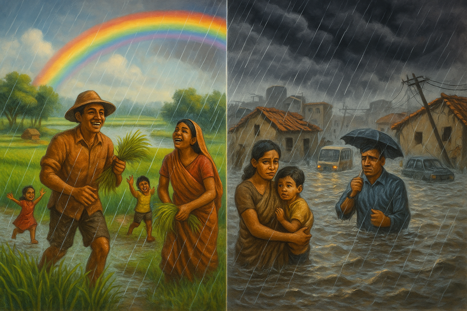 మన జీవితంలో వర్షానికి ఎంతో ప్రాధాన్యం ఉంది. వర్షం లేకుండా పంటలు పండవు, నీటి వనరులు నిండవు, జీవజాలం నిలబడదు. కాబట్టే వర్షాన్ని “ప్రకృతి వరం” అని పిలుస్తారు. కానీ అదే వర్షం అధికంగా కురిస్తే, వరదలు, నష్టాలు, ప్రాణనష్టం కలిగిస్తుంది. అప్పుడు అదే వర్షం “శాపం”గా మారిపోతుంది.