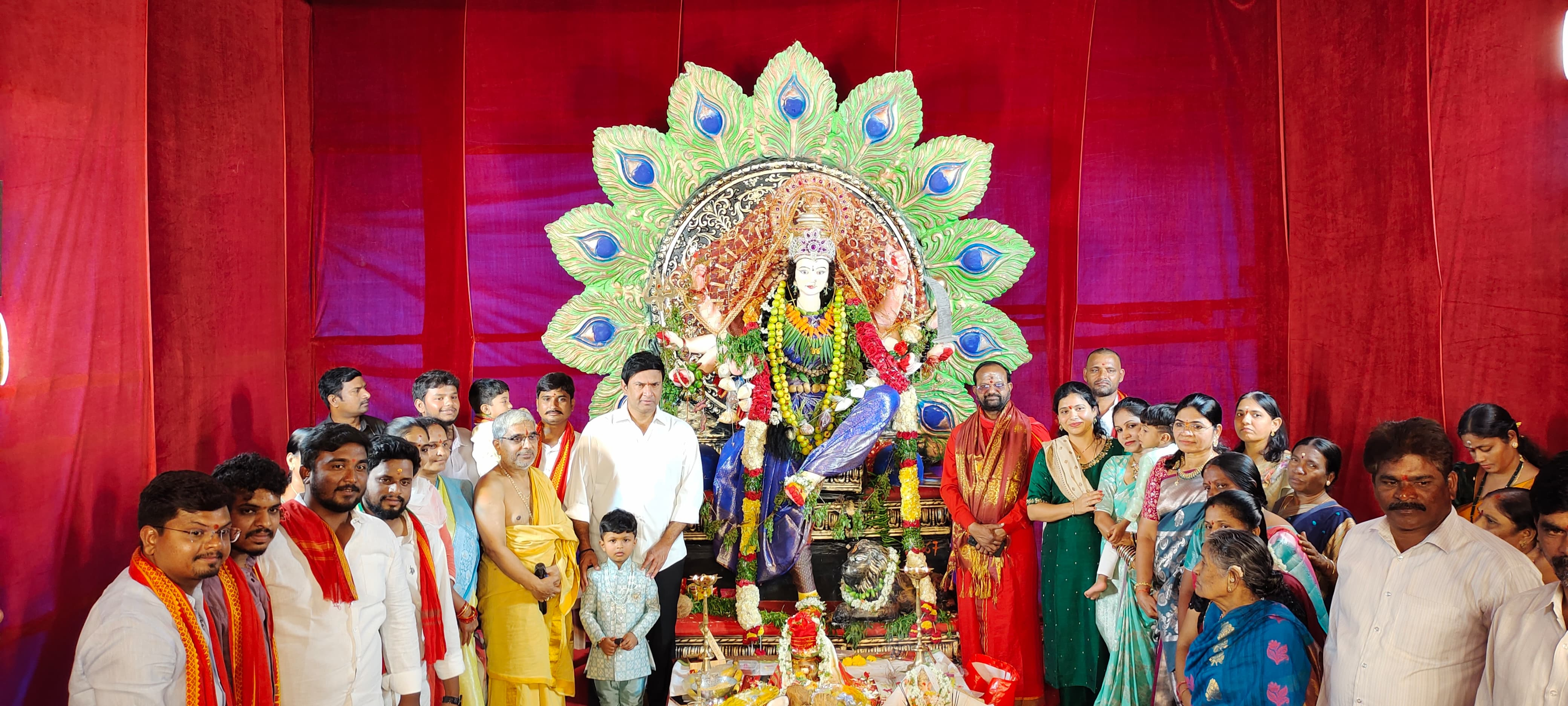 మేడ్చల్ మల్కాజిగిరి జిల్లా :  శ్రీ దేవి నవరాత్రి ఉత్సవాల సందర్భంగా ఈరోజు సూర్యనగర్ కాలనీ ఫేజ్ 2లోని దుర్గ భవాని యూత్ అసోసియేషన్ ఆధ్వర్యంలో ఘనంగా ప్రత్యేక పూజలు, అన్నదాన కార్యక్రమం నిర్వహించబడింది. ఈ రోజు అమ్మవారు అన్నపూర్ణాదేవి అవతారంలో భక్తులకు దర్శనమిచ్చారు. ఈ కార్యక్రమానికి మల్కాజ్ గిరి ఎమ్మెల్యే శ్రీ మర్రి రాజశేఖర్ రెడ్డి  ముఖ్య అతిథిగా హాజరై, అమ్మవారికి పూజలు అర్పించి, భక్తులతో కలిసి అన్నదాన కార్యక్రమంలో పాల్గొన్నారు. అనంతరం ఆయన మాట్లాడుతూ, నవరాత్రులు మహిళ శక్తి ప్రాధాన్యతను గుర్తుచేసే పవిత్ర సందర్భమని, ఇటువంటి కార్యక్రమాలు సమాజంలో భక్తి, సాంఘిక సేవలకు దోహదపడతాయని తెలిపారు.  ఈ కార్యక్రమంలో అల్వాల్ డివిజన్ కార్పొరేటర్ శ్రీమతి శాంతి శ్రీనివాస్ రెడ్డి, బీఆర్ఎస్ పార్టీ నాయకులు డోలి రమేష్, సురేందర్ రెడ్డి,  స్థానిక కాలనీవాసులు, భక్తులు, యువత పెద్ద సంఖ్యలో హాజరై కార్యక్రమాన్ని విజయవంతం చేశారు.