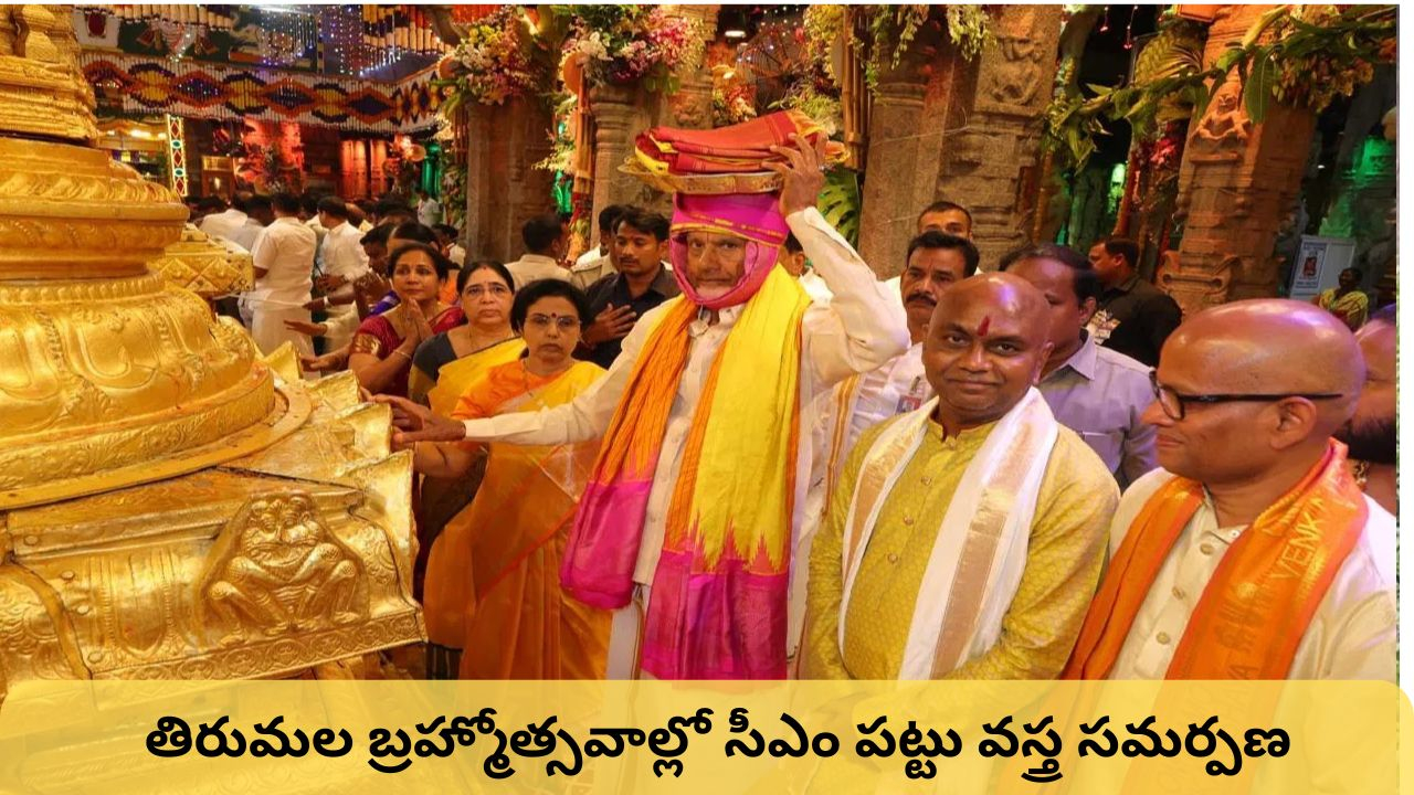 తిరుమలలో తొమ్మిది రోజుల శ్రీవారి బ్రహ్మోత్సవాల ప్రారంభ రోజున ఆంధ్రప్రదేశ్ సీఎం న. చంద్రబాబు నాయుడు శ్రీ వేంకటేశ్వర స్వామికి పట్టు వస్త్రాలు సమర్పించారు.