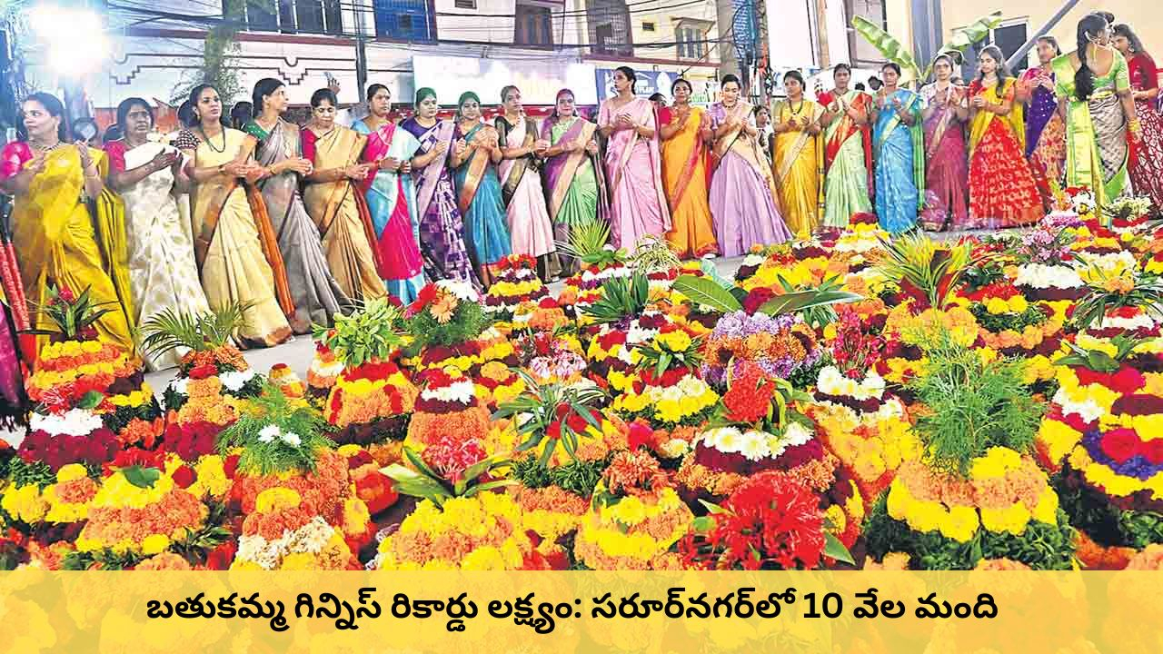 తెలంగాణలో బతుకమ్మ పండుగ ఉత్సవాలు సెప్టెంబర్ 27 నుండి 30 వరకు వైభవంగా జరగనున్నాయి. ఈసారి వేడుకల్లో ముఖ్య ఆకర్షణ సెప్టెంబర్ 29న సరూర్నగర్ స్టేడియంలో జరగబోయే గిన్నిస్ ప్రపంచ రికార్డు ప్రయత్నం.