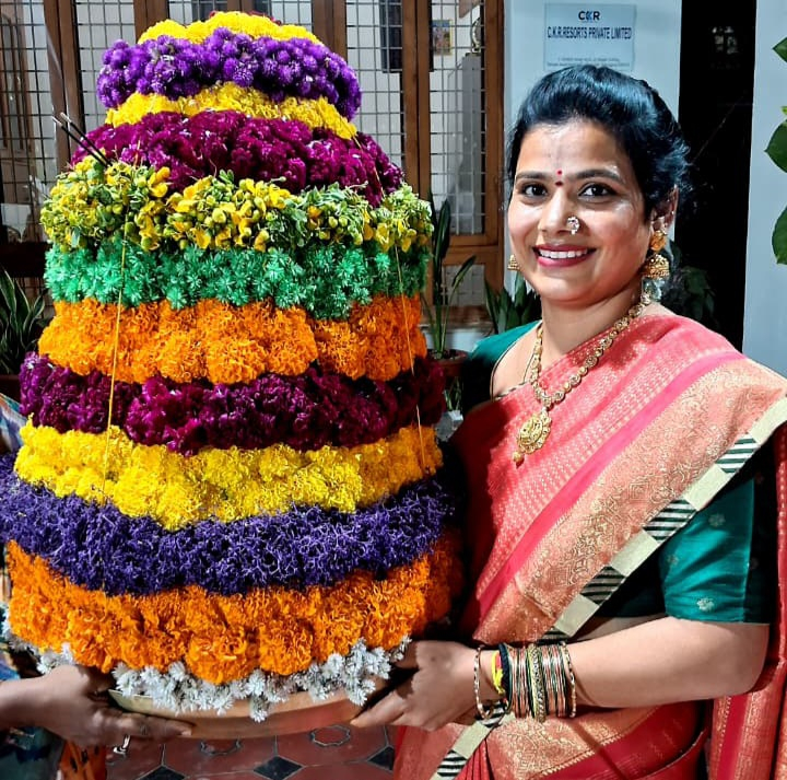 "బతుకమ్మ పండుగలో సద్దుల బతుకమ్మ" శాంతి శ్రీనివాస్ రెడ్డి నివాసంలో ఘనమైన వేడుక