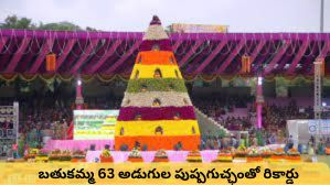 తెలంగాణ సంస్కృతికి ప్రతీకగా నిలిచిన బతుకమ్మ పండుగ ఈసారి ప్రపంచ రికార్డులను బద్దలుకొట్టింది. హైదరాబాద్లోని సరూర్నగర్ స్టేడియంలో 63.11 అడుగుల ఎత్తైన పుష్పగుచ్ఛాన్ని నిర్మించి ‘ప్రపంచంలోనే అతిపెద్ద బతుకమ్మ’గా గిన్నిస్ రికార్డు సాధించింది.