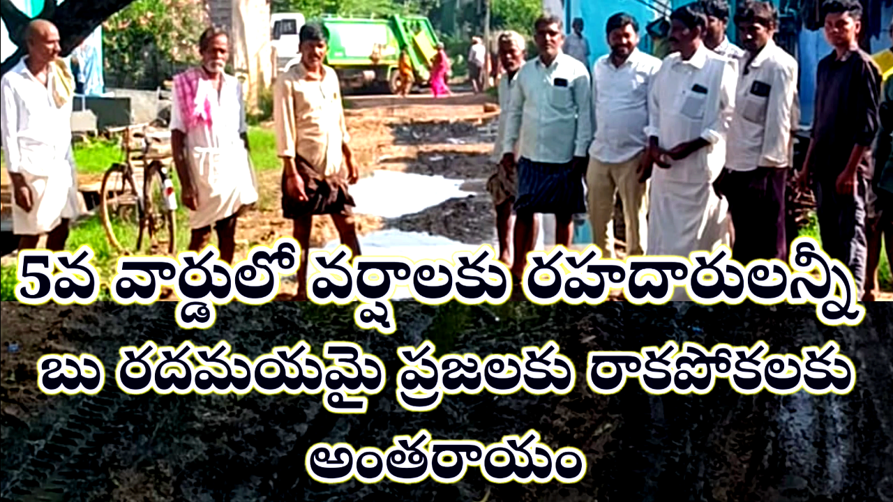 తూర్పు బీసీ కాలనీలోని 5వ వార్డులో వర్షాలకు రహదారులన్నీ బు రదమయమై ప్రజలకు రాకపోకలకు అంతరాయం ఏర్పడింది కాలనీవాసులు ఎన్ని పర్యాయాలు స్థానిక కౌన్సిలర్ మద్దమ్మతో కలిసి అధికారులకు ఫిర్యాదులు చేసినప్పటికీ స్పందన కరువైనది గత వారం రోజుల నుండి కురుస్తున్న వర్షాలకు రహదారులన్నీ వర్షపు నీటితో గుంతల మయం అయ్యాయి దీంతో కాలనీవాసులు అందరూ కలిసి స్థానిక కౌన్సిలర్ తోపాటు చైర్మన్ జలపాల వెంకటేశ్వర్లు శ్వర్లు దృష్టికి తీసుకెళ్లారు చైర్మన్ అక్కడికి చేరుకొని రహదారులు పరిశీలించి వెంటనే మరమ్మతు పనులు చేపడతామని హామీ ఇచ్చారు ఈ కార్యక్రమంలో కౌన్సిలర్ భర్త డ్రైవర్ మద్దిలేటి కాలనీ ప్రజలు పాల్గొన్నారు