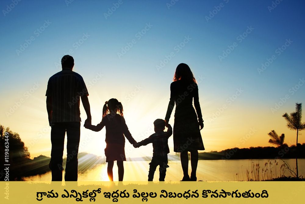 తెలంగాణ రాష్ట్రంలోని గ్రామీణ స్థానిక సంస్థల ఎన్నికల్లో “ఇద్దరు పిల్లల పాలసీ” కొనసాగుతోంది. 2023లో కూడా ఈ నిబంధనను కఠినంగా అమలు చేస్తూ, ఇద్దరికి మించి పిల్లలు ఉన్న అభ్యర్థులు పోటీలో పాల్గొనలేరు.