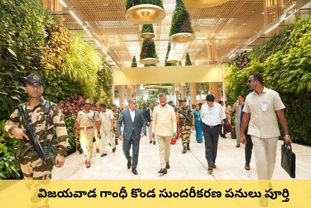 విజయవాడ నగరంలోని ప్రసిద్ధ గాంధీ కొండ ప్రాంతం ముఖ్యమంత్రి నారా చంద్రబాబు నాయుడు పర్యటన నేపథ్యంలో సుందరీకరణ పనులతో మెరిసిపోతోంది.