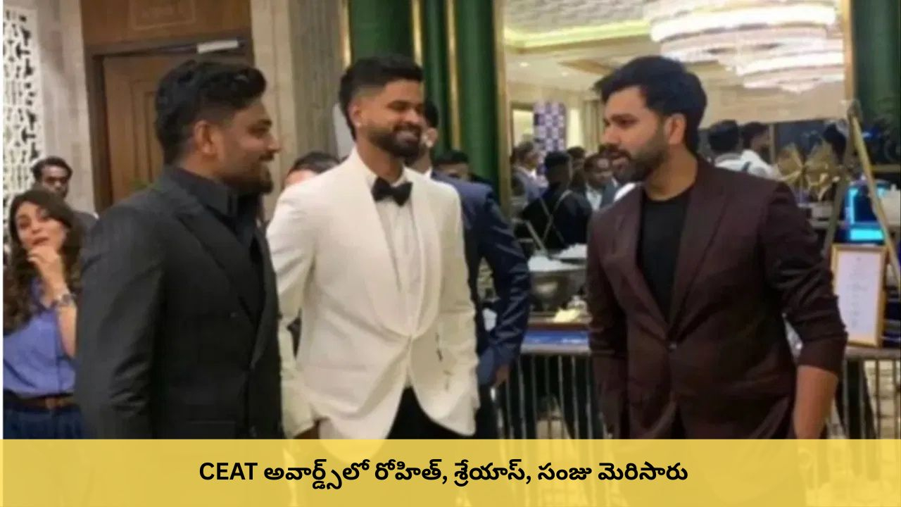 హైదరాబాద్లో జరిగిన CEAT క్రికెట్ అవార్డ్స్ కార్యక్రమంలో భారత క్రికెట్ స్టార్లు రోహిత్ శర్మ, శ్రేయాస్ అయ్యర్, సంజు శాంసన్ పాల్గొన్నారు.