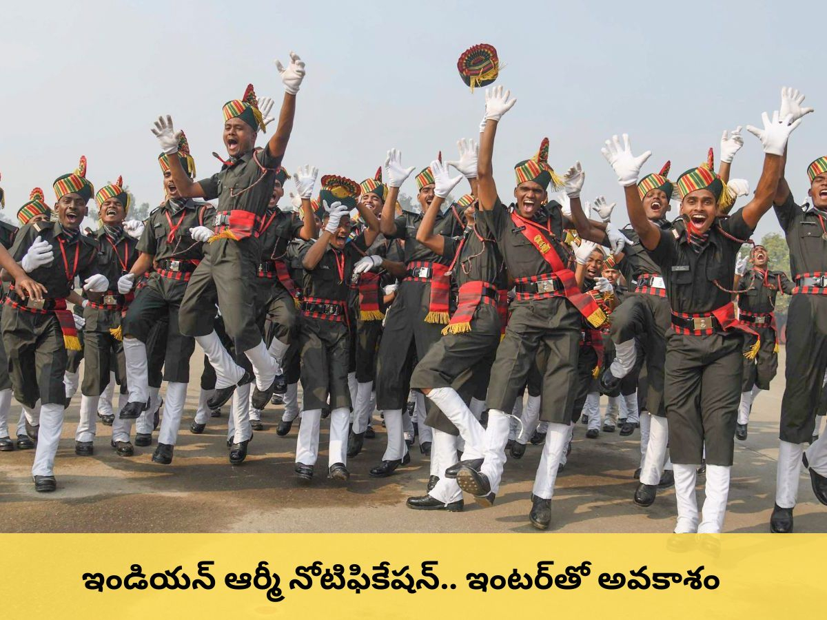 ఇండియన్ ఆర్మీ తాజా నోటిఫికేషన్ విడుదలైంది. దేశ సేవలో భాగస్వామ్యం కావాలనుకునే యువతకు ఇది మంచి అవకాశం. ఇంటర్ లేదా డిగ్రీ పూర్తి చేసిన అభ్యర్థులు ఈ నోటిఫికేషన్కు అప్లయ్ చేసుకోవచ్చు.