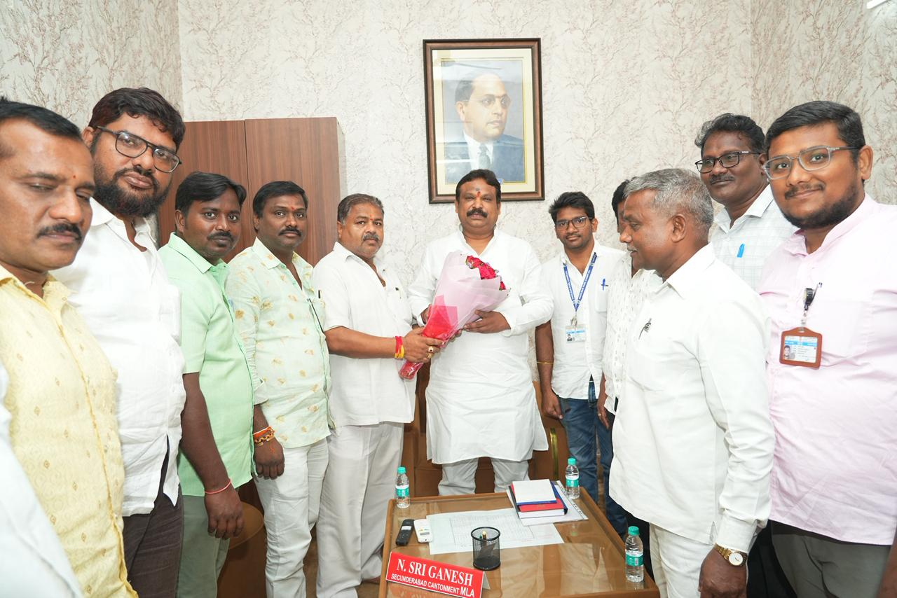 మేడ్చల్ మల్కాజిగిరి జిల్లా : మౌలాలి లోని N F C ( న్యూక్లియర్ ఫ్యూయల్ కాంప్లెక్స్) అణు ఇంధన సంస్థ ఇండస్ట్రియల్ వర్కర్స్ యూనియన్ కు నూతనంగా ఎన్నికైన పాలకవర్గ సభ్యులు గురువారం పికెట్ లోని ఎమ్మెల్యే క్యాంపు కార్యాలయంలో కంటోన్మెంట్ ఎమ్మెల్యే శ్రీగణేష్ ని మర్యాదపూర్వకంగా కలిశారు. తనను కలిసిన నూతన పాలకవర్గ సభ్యులకు శుభాకాంక్షలు తెలిపి, కార్మికుల సంక్షేమం,హక్కుల కోసం పనిచేసి కార్మికుల ఆకాంక్షలకు అనుగుణంగా పని చేయాలని సూచించారు.కార్మికులకు, సంస్థలకు వారధిగా యూనియన్లు పనిచేయాలని,వారి సంక్షేమమే పరమావధిగా,వారి హక్కుల సాధన కోసం సంస్థలతో మంచి సంబంధాలు నెలకొల్పకోవాలని,సంస్థల అభివృద్ధికి కూడా తోడ్పాటు అందించాలని కోరారు.ఎమ్మెల్యే శ్రీగణేష్ ను కలిసిన వారిలో యూనియన్ ప్రెసిడెంట్ దేవకుమార్, వర్కింగ్ ప్రెసిడెంట్ మురళీధర్ గౌడ్, జనరల్ సెక్రటరీ రతన్ సింగ్, ట్రెజరర్ శ్యాం రావు, వైస్ ప్రెసిడెంట్ లు యాకూబ్, కోటి బాబు, శ్రీనివాస్, హనుమంత్  మరియు ఇతర సభ్యులు పాల్గొన్నారు..
