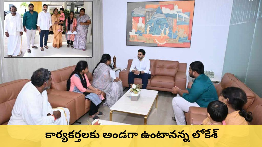 టీడీపీ నేత మరియు మంత్రి నారా లోకేశ్ పార్టీ కార్యకర్తలకు మద్దతుగా నిలిచారు. "కార్యకర్తలకు ఏ కష్టమొచ్చినా అండగా ఉంటా" అని ఆయన స్పష్టం చేశారు.