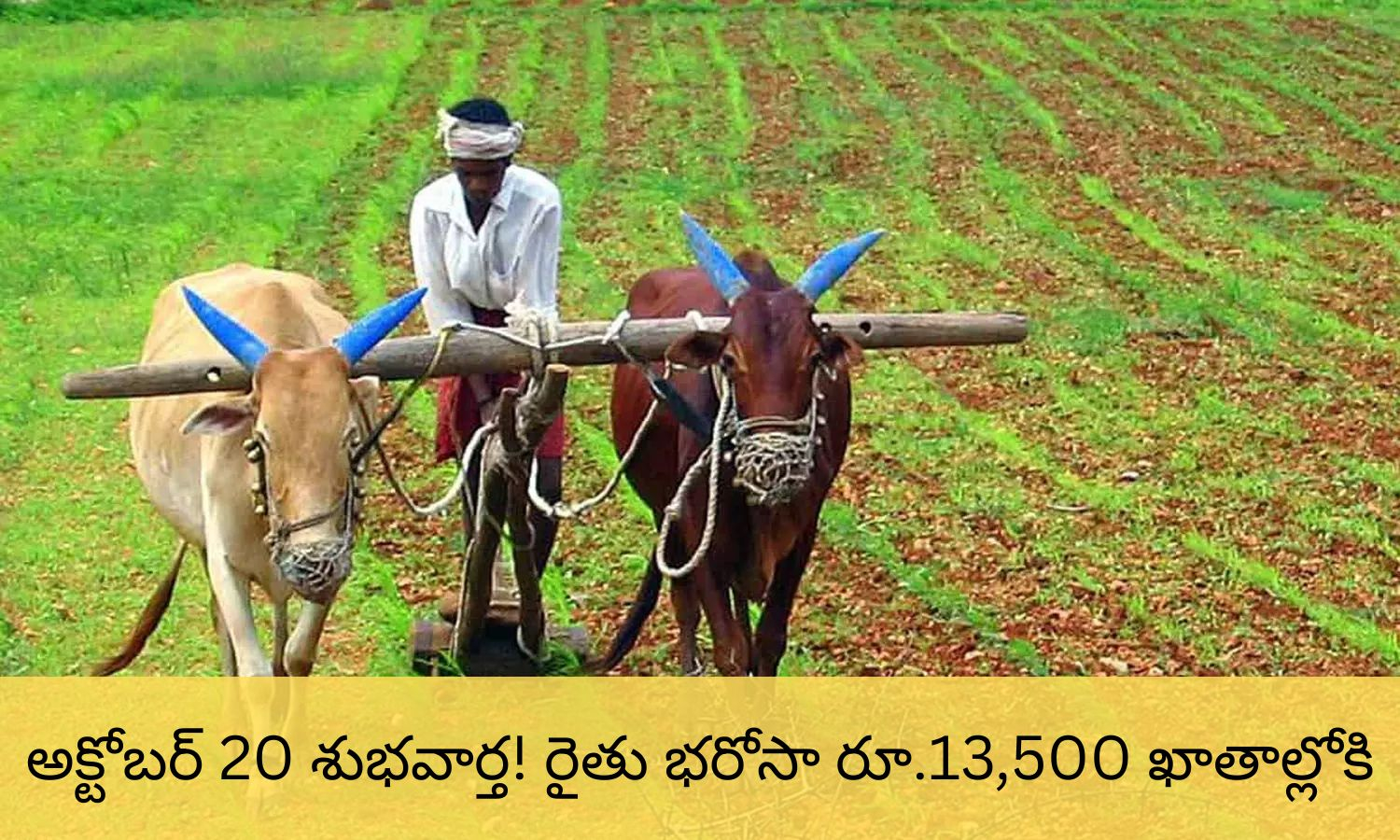 రైతు భరోసా పథకం కింద ప్రతి రైతుకు సంవత్సరానికి ఇచ్చే రూ.13,500 సాయాన్ని అక్టోబర్ 20 నుండి రైతుల ఖాతాల్లో జమ చేయనున్నారు.